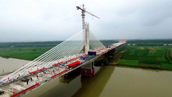 8月22日上午9時58分,安徽省內(nèi)跨度最大的公路矮塔斜拉橋——濟祁高速淮河特大橋主橋順利實現(xiàn)合龍,為實現(xiàn)年底建成通車奠定了堅實基礎。