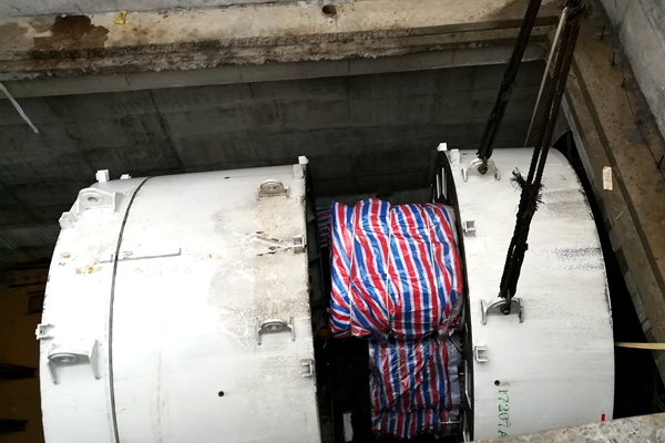軌道交通4號線首臺盾構機“奮斗一號”順利吊裝下井