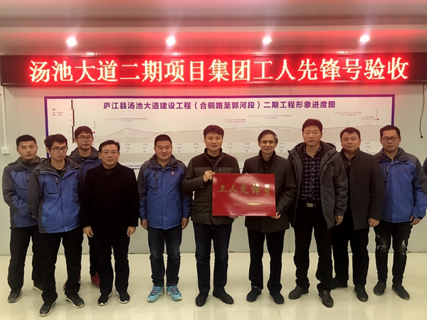 12月27日,集團(tuán)工會(huì)調(diào)研專員吳曉伍在公司工會(huì)主席楊建強(qiáng)的陪同下,對(duì)湯池大道項(xiàng)目“工人先鋒號(hào)”創(chuàng)建活動(dòng)進(jìn)行考核、驗(yàn)收,并現(xiàn)場(chǎng)授牌。