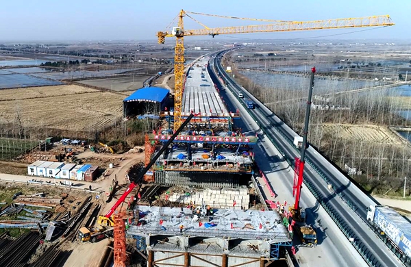 固蚌高速02標(biāo),春節(jié)期間加班加點(diǎn)推進(jìn)工程建設(shè),在南岸引橋右幅順利實(shí)現(xiàn)貫通后,170名參建人員搶抓晴好天氣,保持大干勢(shì)頭,同步推進(jìn)四個(gè)工區(qū)橋面作業(yè),架橋機(jī)、履帶吊等機(jī)械滿載開(kāi)工,為3月底達(dá)成橋面工程節(jié)點(diǎn)奠定堅(jiān)實(shí)基礎(chǔ)。蕪黃項(xiàng)目再動(dòng)員、再鼓勁,人員輪休、機(jī)械不停,荊竹坑大橋、程家坦隧道及附屬工程穩(wěn)步推進(jìn),2#預(yù)制梁場(chǎng)每天以8片梁速度加速生產(chǎn),全力沖刺半幅通車(chē)節(jié)點(diǎn)目標(biāo)。