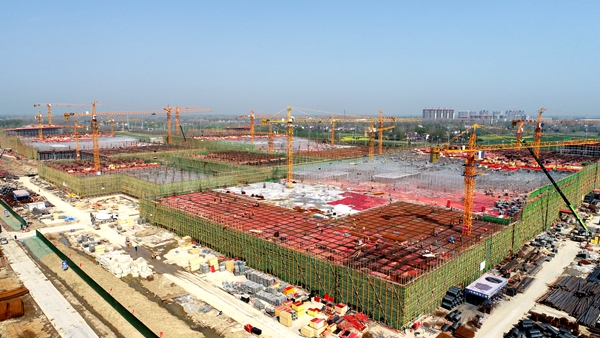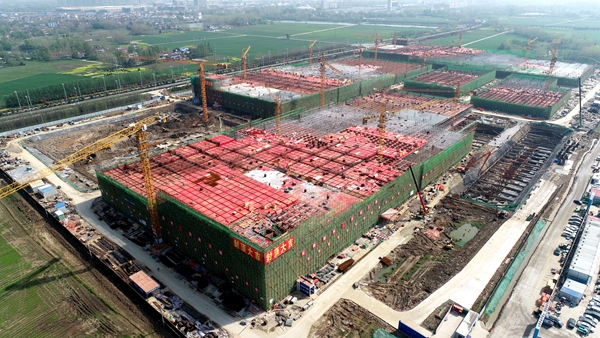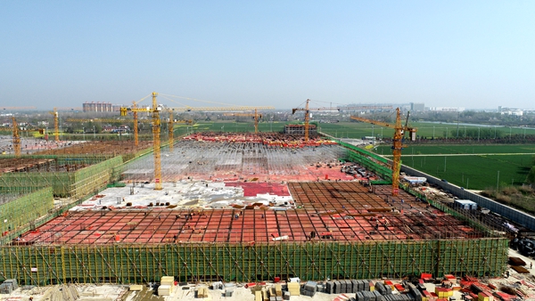 工期是項目擺在首位的管控要素。自開工以來,項目堅持產值與形象進度“雙控”,堅持以日保周、以周保旬、以旬保月。積極發(fā)揚“特別能吃苦、特別能戰(zhàn)斗”的企業(yè)作風,克服重重困難,搶晴天、戰(zhàn)雨天,與時間賽跑,晝夜奮戰(zhàn),一一消除不利因素。項目參建人員超2千人,大型施工機械設備近百輛。近期,項目平均每天澆筑混凝土1500方,最高峰超3000方,平均每月完成產值1億元。不到半年,陸續(xù)開啟三大廠房封頂施工,現(xiàn)場實現(xiàn)“一天一變化、一周一變樣、一月大變樣”。
