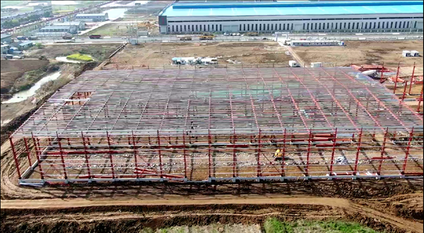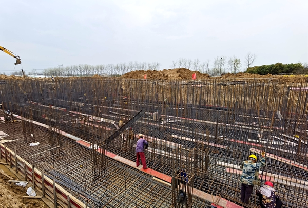 2021年1月4日,在基地藍(lán)圖繪就的基礎(chǔ)上,廠房和辦公生活設(shè)施項(xiàng)目部進(jìn)場(chǎng)施工。他們克服了土地征收、連續(xù)多雨天氣、拆遷困難、樹木砍伐等不利因素,發(fā)揚(yáng)“特別能吃苦、特別能戰(zhàn)斗”的企業(yè)作風(fēng),解決了一個(gè)又一個(gè)棘手的問題,加班加點(diǎn)推進(jìn)基地基礎(chǔ)設(shè)施建設(shè)。截至3月底,吳山產(chǎn)業(yè)化基地項(xiàng)目3#管片生產(chǎn)車間地基基礎(chǔ)、短柱、框梁施工完成100%;3#管片生產(chǎn)車間鋼柱、鋼梁等主體結(jié)構(gòu)安裝完成70%,拌合站主機(jī)、粉煤灰罐基礎(chǔ)完成100%。