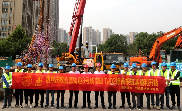 開局就是決戰(zhàn)、起步就是沖刺。2020年9月29日,項目僅用不到半個月的時間完成各項準(zhǔn)備工作,在合肥軌道2、3號線延長線全線率先開鉆首樁樁基,比預(yù)定時間提前一個月。項目部錨定節(jié)點工期,自我加壓,加強(qiáng)管理、科學(xué)調(diào)度,積極細(xì)化施工組織,制定每日施工任務(wù)清單,增加機(jī)械設(shè)備投入,全面掀起勞動競賽大干熱潮。針對地質(zhì)特點,引進(jìn)400大功率旋挖鉆機(jī)并改良鉆頭為螺旋鉆頭,提高了設(shè)備使用率和人員勞動生產(chǎn)率。暢通施工各方溝通渠道,積極征集合理化建議,凝聚各方智慧努力加快施工進(jìn)度。