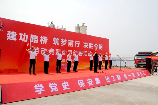 路面公司總經(jīng)理薛斌作動員講話,副總經(jīng)理陳智宣讀了勞動競賽活動方案,項目經(jīng)理代表、黨員代表、青年代表和施工班組代表分別作了表態(tài)發(fā)言?,F(xiàn)場還進行了“黨員先鋒隊”、“工人先鋒號”、“青年突擊隊”授旗。