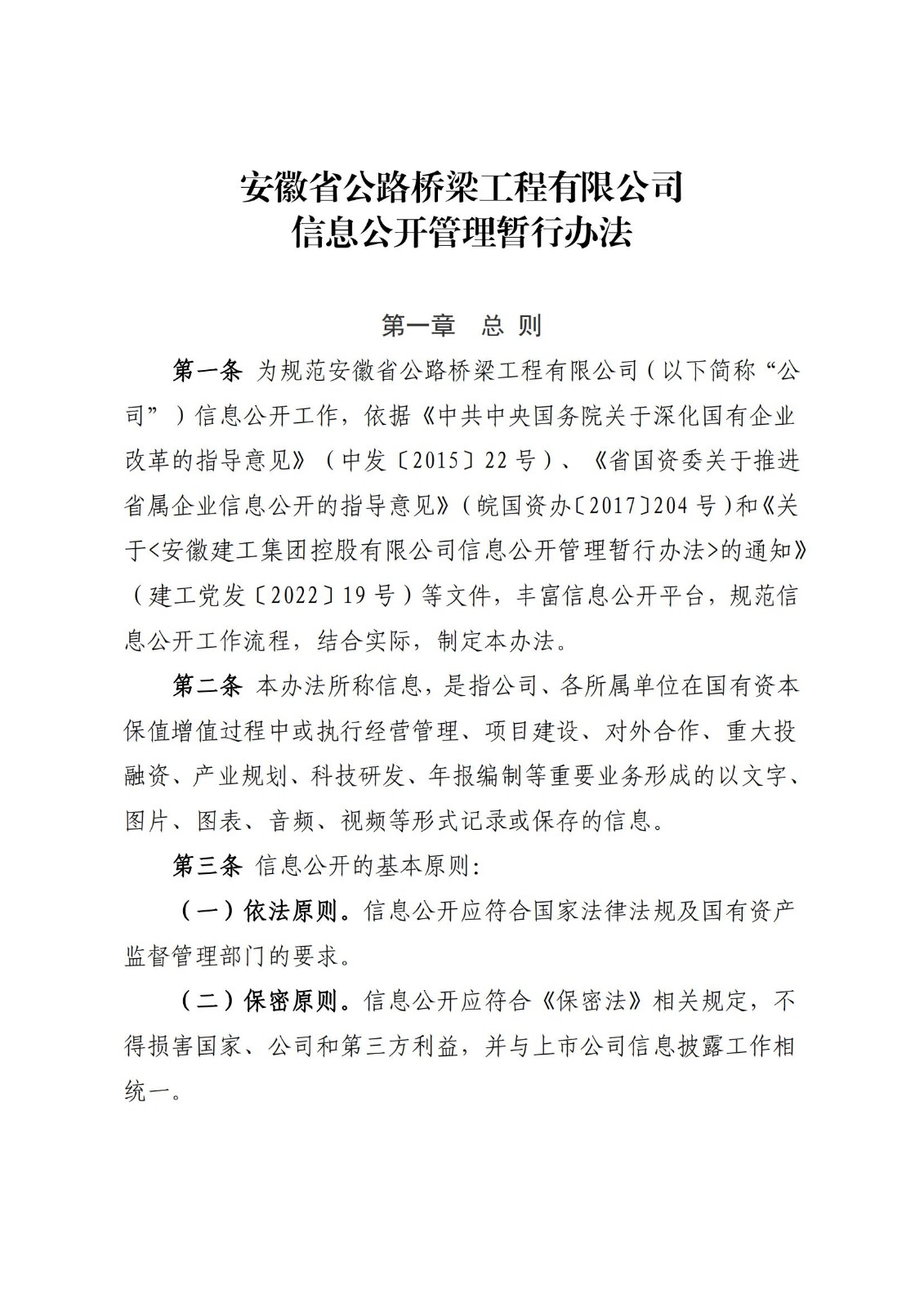 安徽建工公路橋梁建設(shè)集團有限公司信息公開暫行管理辦法