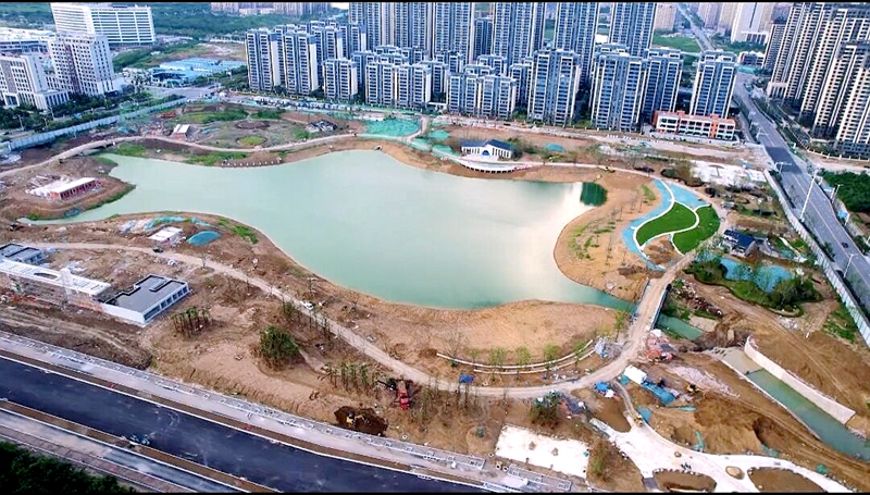 8月1日下午,記者來到該公園項目建設(shè)現(xiàn)場看到,工程車輛來回穿梭,各種機械設(shè)備正在緊張作業(yè),工人們有的在公園東南角區(qū)域進行地面鋪磚、綠化,有的在水庫西側(cè)架設(shè)游樂設(shè)施。據(jù)施工現(xiàn)場負責人介紹,項目目前每天有近200人施工,他們采取錯峰施工、備齊備足防暑物資等措施,確保工人們在高溫天氣里安全施工;現(xiàn)階段,公園既定各項工程節(jié)點已全部完成,園區(qū)內(nèi)硬質(zhì)景觀工程完成60%,綠化工程完成50%。