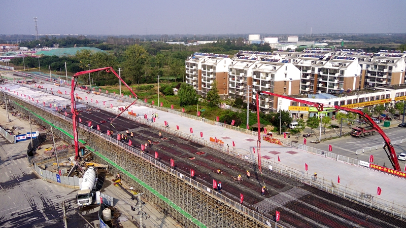 10月14日上午,G312合六路2標(biāo)項(xiàng)目“百日攻堅(jiān)大會(huì)戰(zhàn)”專(zhuān)項(xiàng)競(jìng)賽傳來(lái)捷報(bào),伴隨著小蜀山西路上跨橋最后一聯(lián)現(xiàn)澆箱梁頂板順利澆筑,項(xiàng)目主線順利實(shí)現(xiàn)貫通。