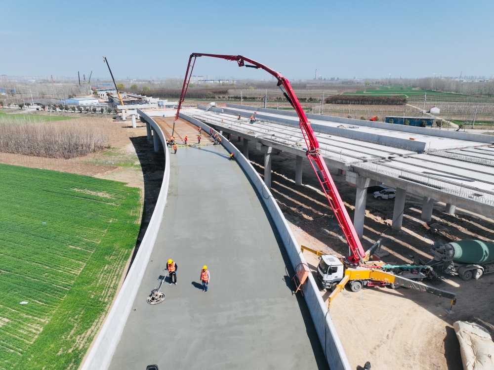 “節(jié)后復(fù)工以來,我們搶抓春季黃金施工期,科學(xué)統(tǒng)籌工程任務(wù),優(yōu)化生產(chǎn)資源配置,在確保安全和質(zhì)量的前提下,加快推進(jìn)工程進(jìn)度?!卑不章窐蛐旎锤犯咚伲ɑ幢倍危┞坊访鏄?biāo)黨支部副書記李天天說,今年一季度,項(xiàng)目組織600余名建設(shè)者、280余臺機(jī)械設(shè)備投入施工一線,累計(jì)完成混凝土澆筑2.8587萬立方米,澆筑樁基105根,架設(shè)鋼箱梁48節(jié)段,沱河特大橋完成懸臂澆筑施工12塊,完成產(chǎn)值1.4135億元。