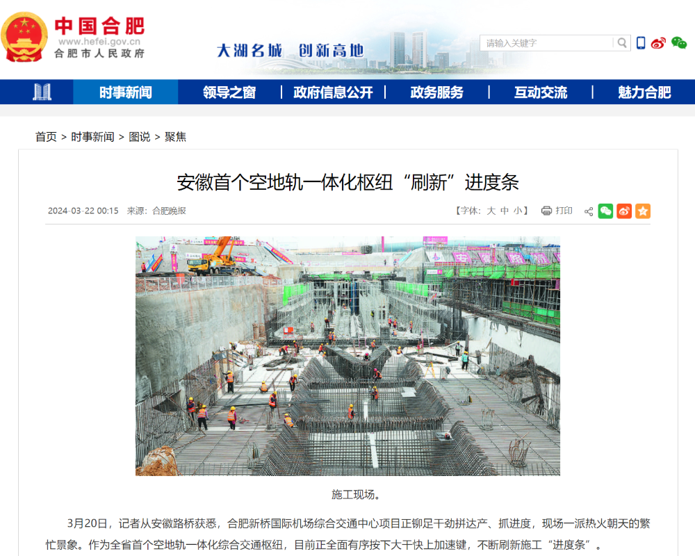 【名媒聚焦】多家主流媒體持續(xù)關注合肥新橋國際機場綜合交通中心項目建設