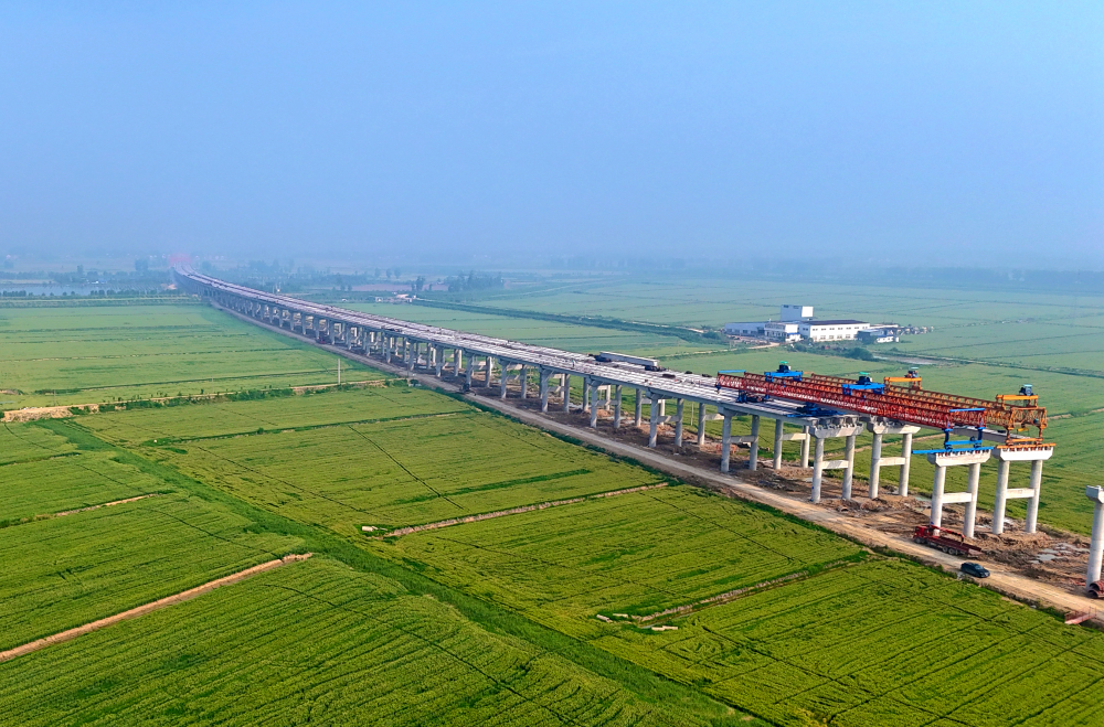 【名媒聚焦】淮南市人民政府發(fā)布、淮南日報(bào)、淮河早報(bào):競速初夏!S16合周高速東淝河特大橋主橋首段鋼箱梁順利架設(shè)
