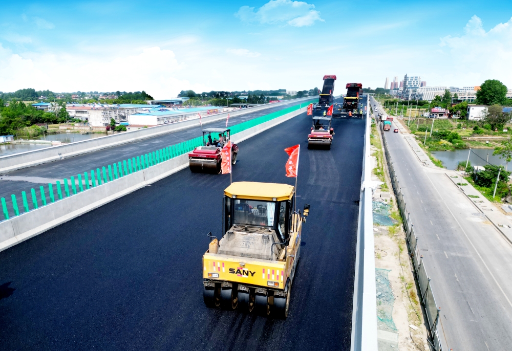 【路橋“競(jìng)”行時(shí)】G347通江大道03標(biāo)西灣路主線(xiàn)高架橋?yàn)r青中面層攤鋪圓滿(mǎn)完成