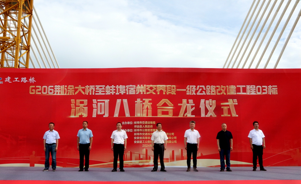 蚌埠市交通運(yùn)輸局領(lǐng)導(dǎo)楊德營、王二標(biāo)、王殿利,有關(guān)單位和部門負(fù)責(zé)同志,公司領(lǐng)導(dǎo)韋秀剛等參加合龍儀式。