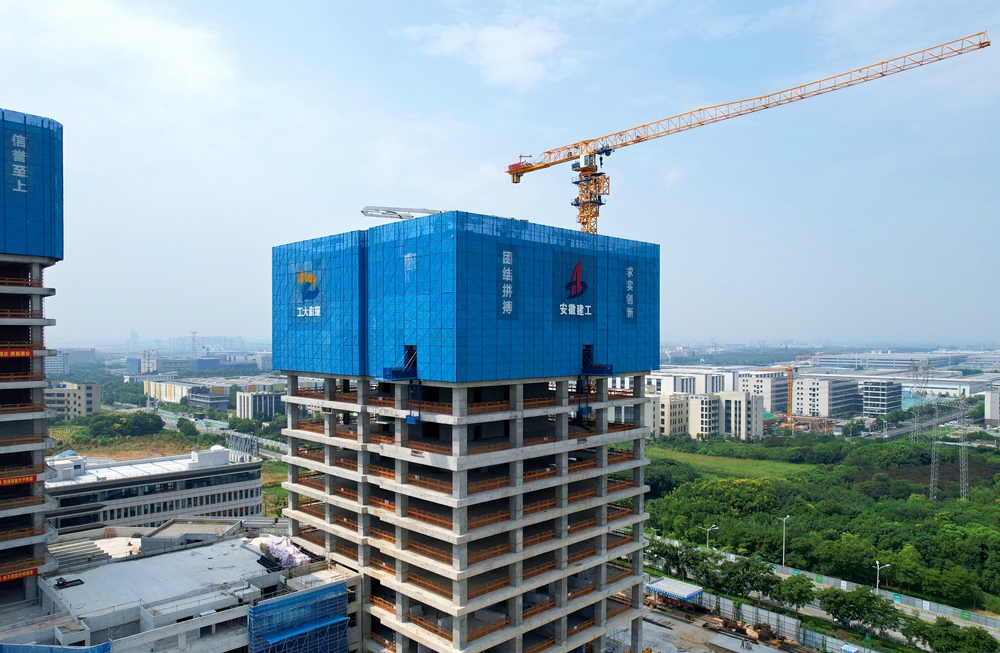 桃花科創(chuàng)產(chǎn)業(yè)園項目A1#樓,是公司承建的首個超高層建筑,地上29層、地下2層,總建筑面積5.4萬平方米,建設高度129.6米,建成后將成為包含辦公、商業(yè)、酒店的商業(yè)綜合體。建設過程中,項目采用智能布料機及附著式升降腳手架等新工藝新技術(shù),實現(xiàn)6天一個標準層的建設新速度,步入“快增長”時期。