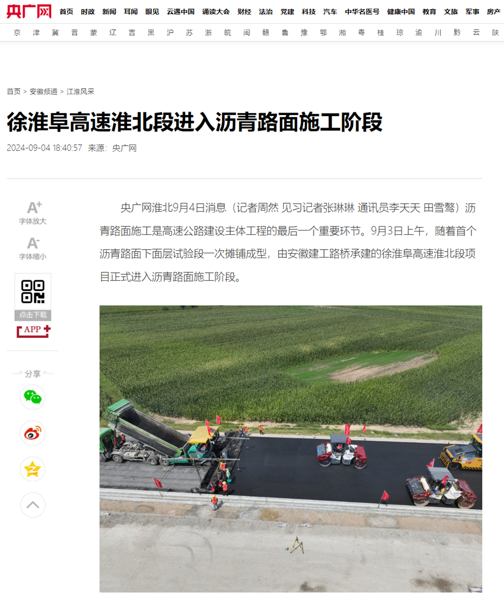 【名媒聚焦】央廣網(wǎng)、中安在線、淮北新聞聯(lián)播等主流媒體聚焦徐淮阜高速淮北段項(xiàng)目施工建設(shè)