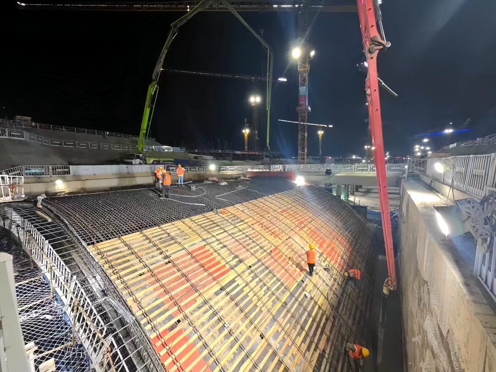 作為安徽省首個(gè)空地軌一體化綜合客運(yùn)交通樞紐項(xiàng)目,合肥新橋機(jī)場(chǎng)綜合交通中心項(xiàng)目現(xiàn)場(chǎng)一派繁忙景象。群塔作業(yè)指揮有序,工程土方運(yùn)輸日夜不歇,在GTC、多功能廳、大鐵馬蹄段、小鐵標(biāo)準(zhǔn)段現(xiàn)場(chǎng),600余名工人同步作業(yè)?!皥A一個(gè)夢(mèng)想,勝過小家話中秋”,一線建設(shè)者們同信念,同理想,一鼓作氣,鉚足干勁抓生產(chǎn),奮斗著的中秋,最美。