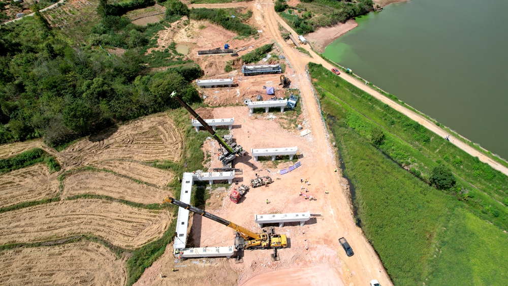 【路橋“競”行時】S22天天高速YQB2標完成全線首片箱梁架設