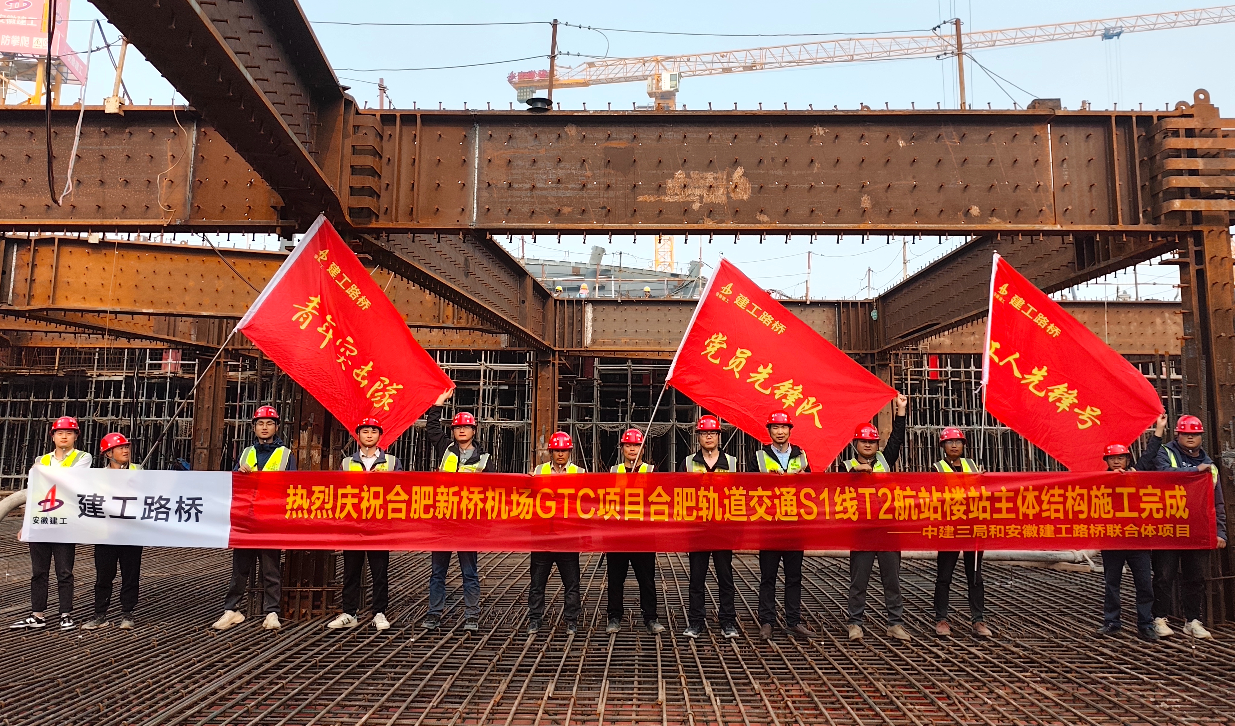 【路橋“競”行時】合肥新橋國際機場綜合交通中心項目軌道交通S1號線T2航站樓站結(jié)構(gòu)封頂