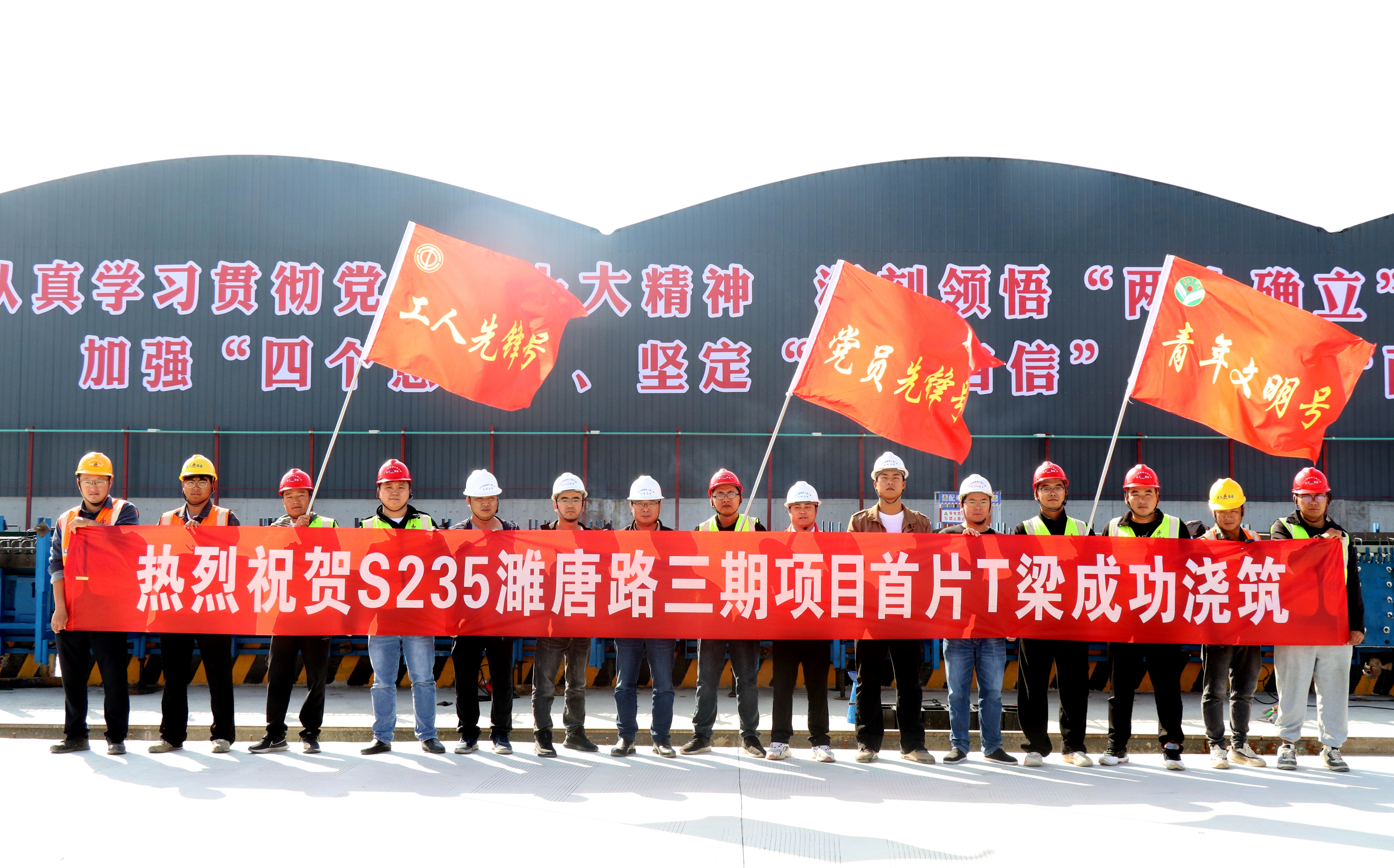 10月30日下午,S235濉唐路三期項(xiàng)目首片T梁澆筑完成,項(xiàng)目橋梁預(yù)制生產(chǎn)正式啟動(dòng)。