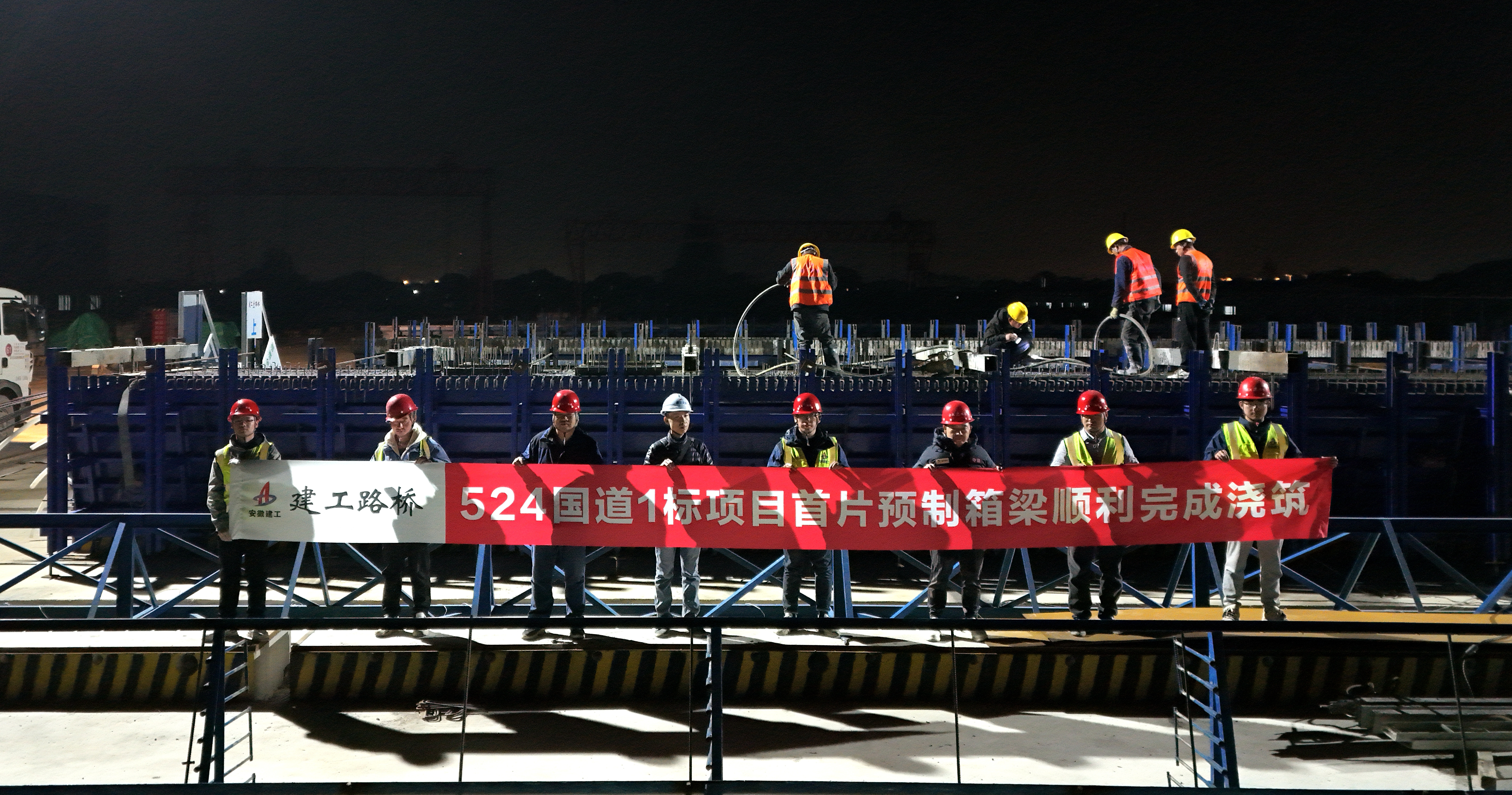 【路橋“競”行時(shí)】浙江524國道項(xiàng)目順利完成首片預(yù)制箱梁澆筑