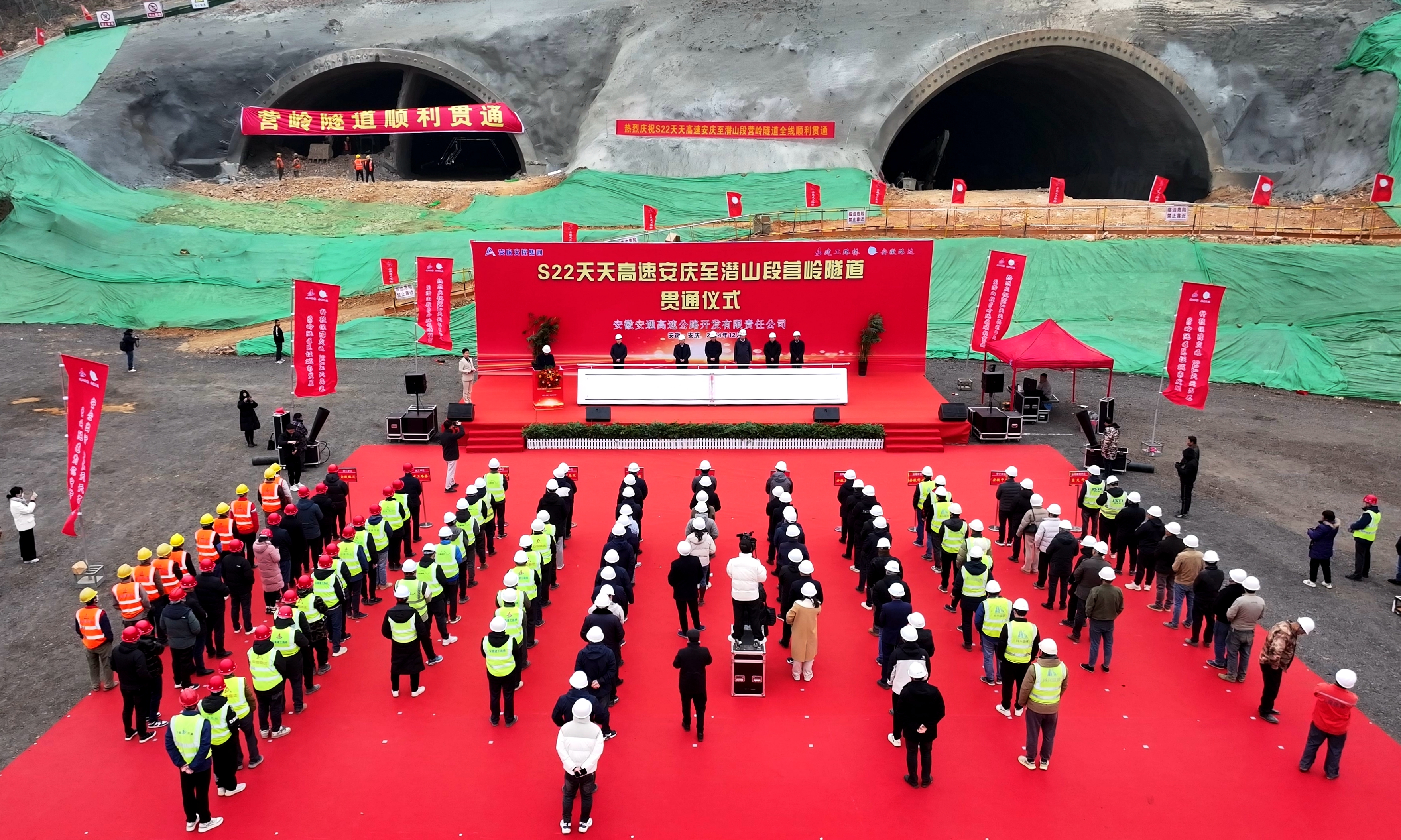 安慶市交通運(yùn)輸局副局長(zhǎng)朱小剛出席儀式并宣布隧道順利貫通。公司黨委委員、副總經(jīng)理韋秀剛,安慶市交通控股集團(tuán)有限公司、市交通運(yùn)輸綜合行政執(zhí)法支隊(duì)負(fù)責(zé)同志出席隧道貫通儀式。