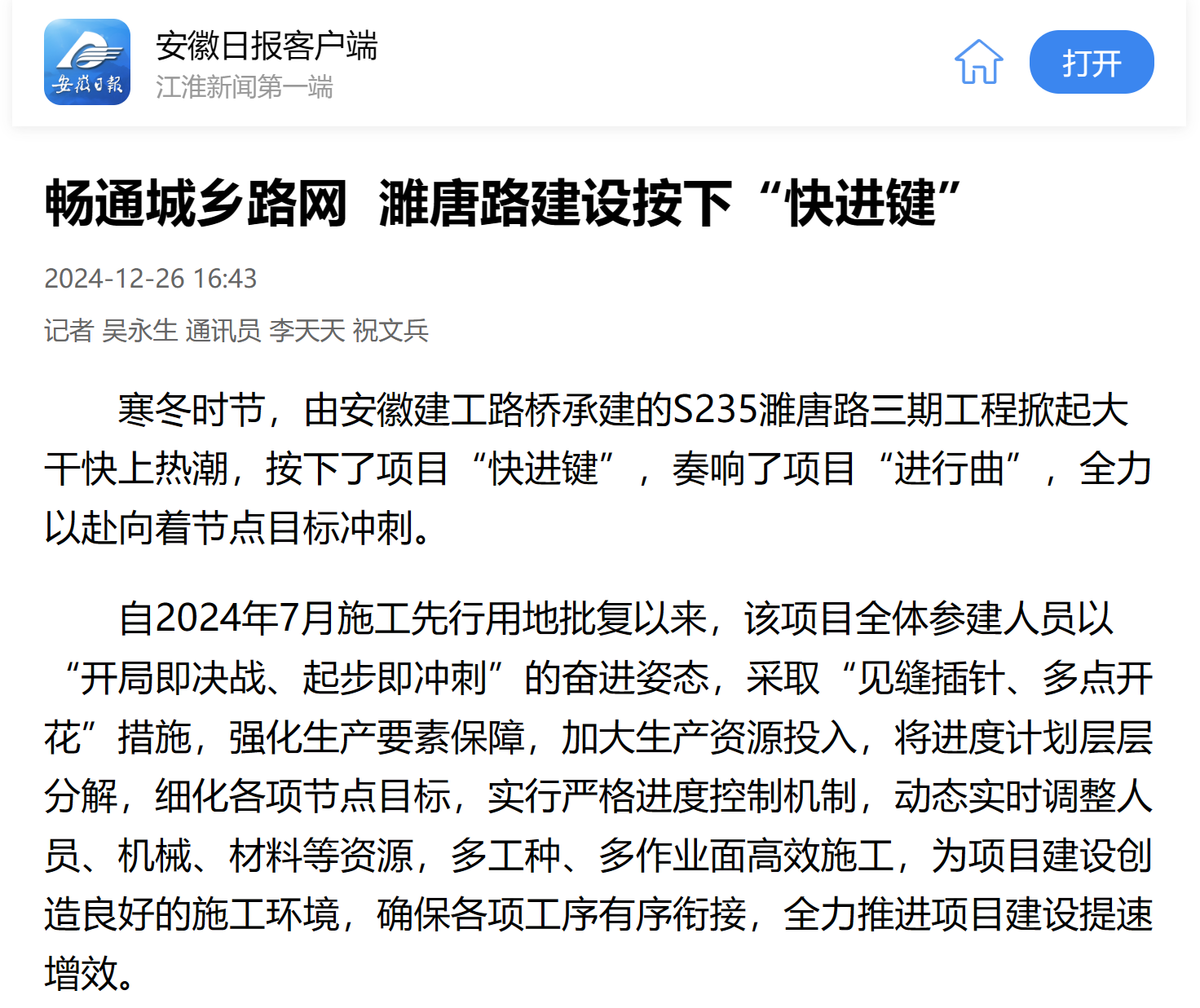 【名媒聚焦】安徽日報客戶端:暢通城鄉(xiāng)路網(wǎng) S235濉唐路三期項(xiàng)目建設(shè)按下“快進(jìn)鍵”