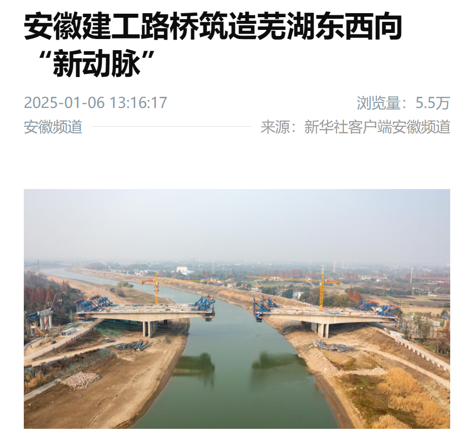 【名媒聚焦】新華社安徽頻道:安徽建工路橋筑造蕪湖東西向“新動(dòng)脈”