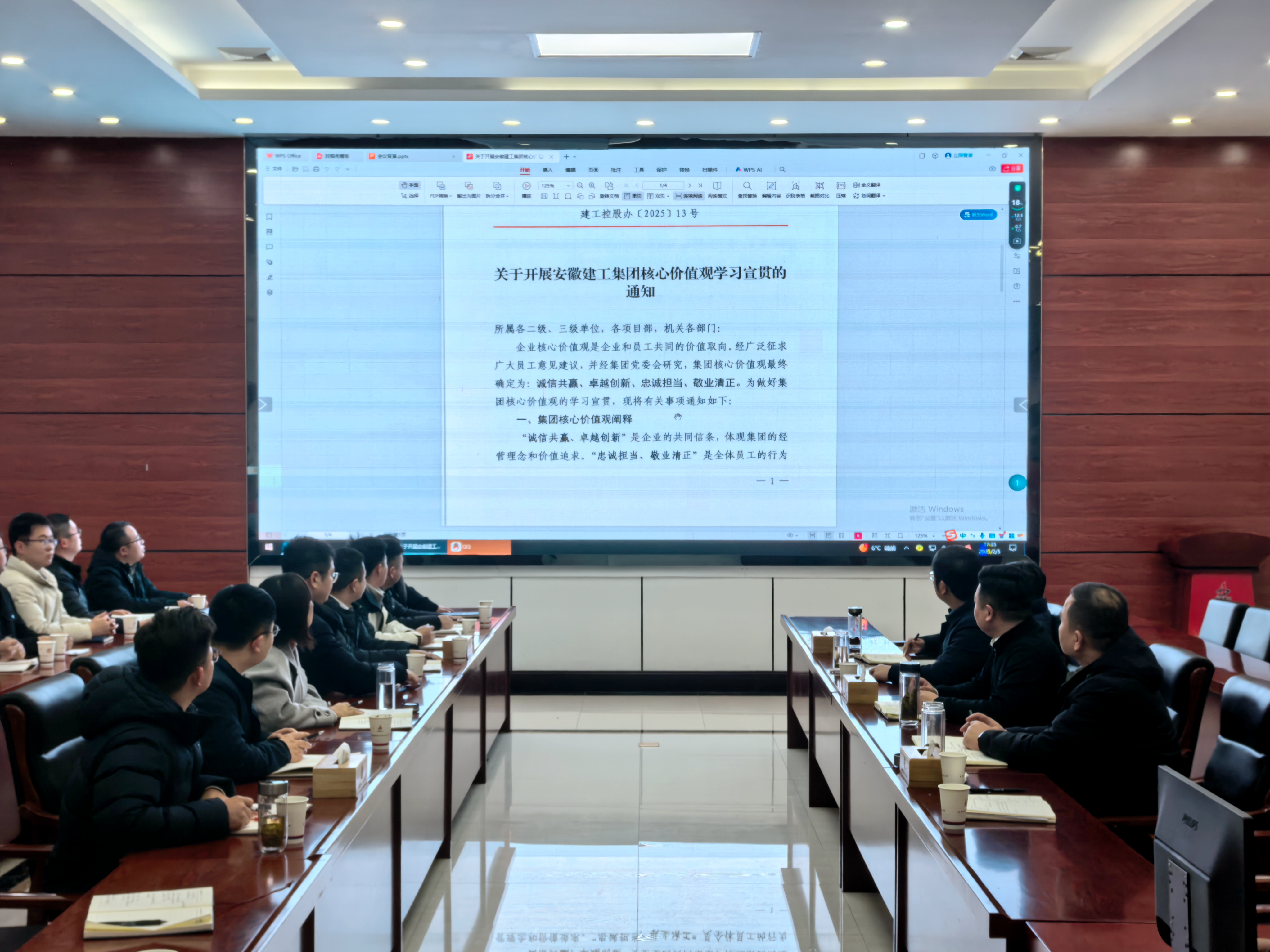 公司機關及時更新門廳、電梯間宣傳展板內(nèi)容,并第一時間組織干部職工學習集團核心價值觀內(nèi)容及闡釋。