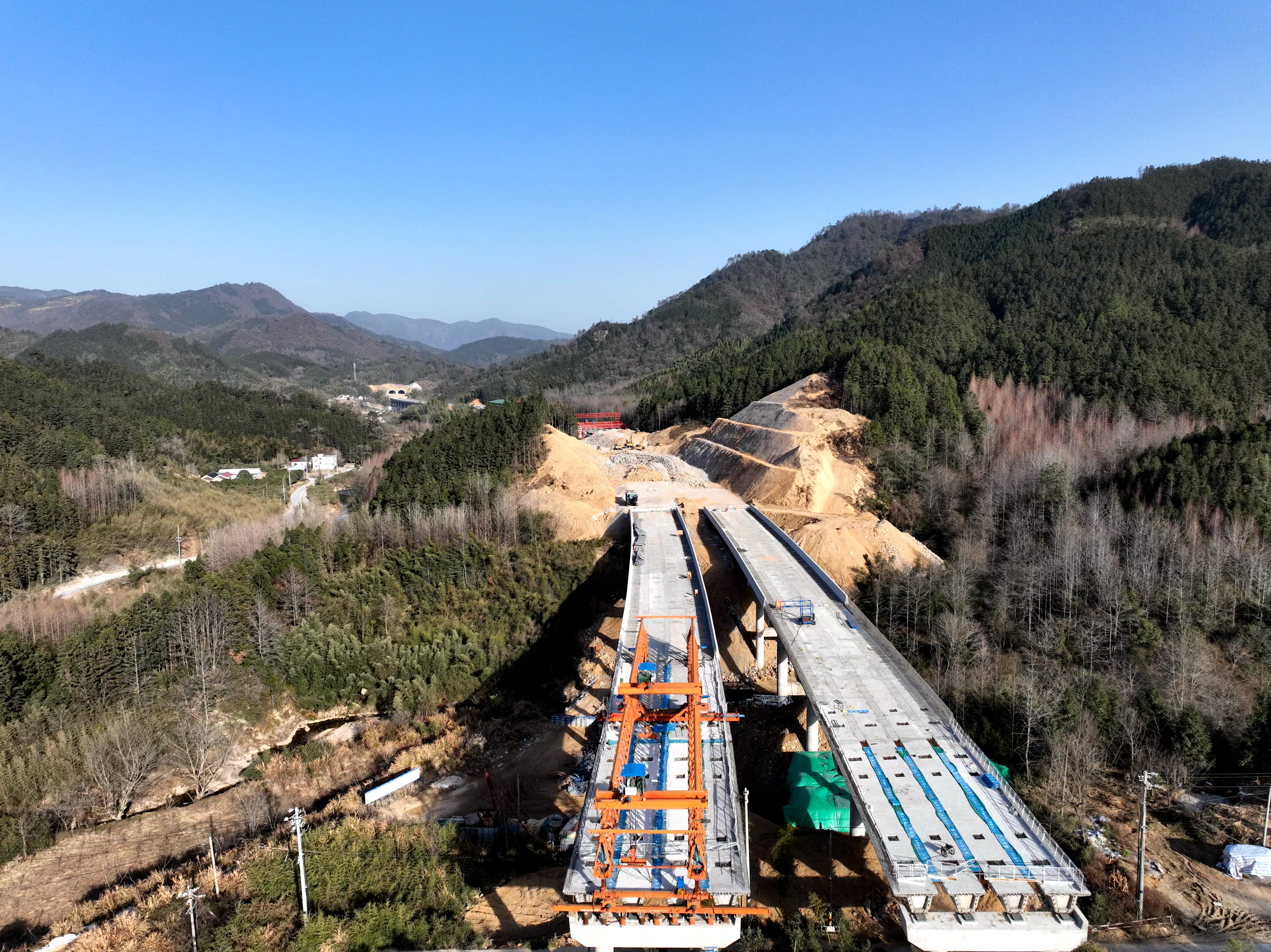 G105龍南改建項(xiàng)目加快推進(jìn)梁板架設(shè)和路面施工。