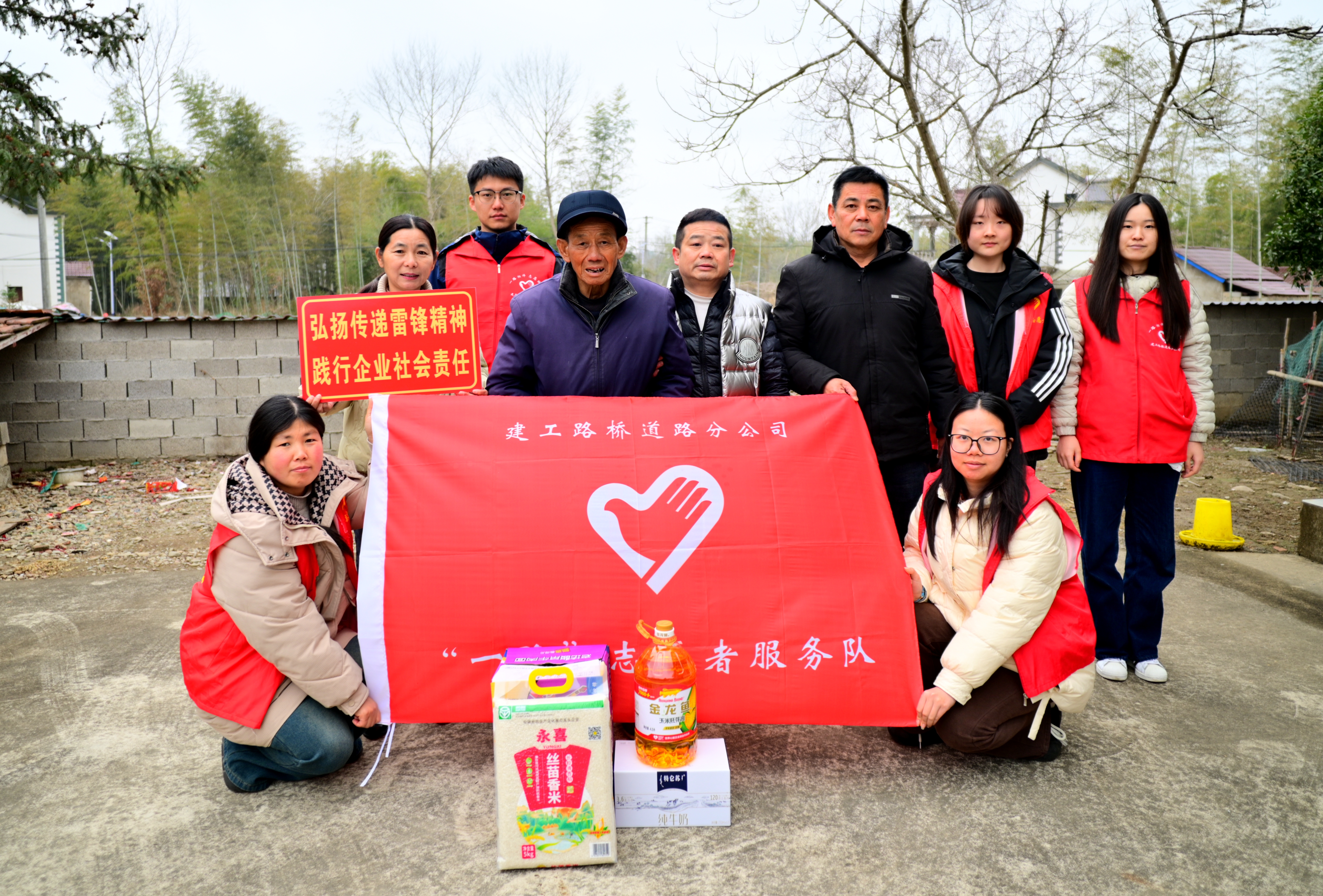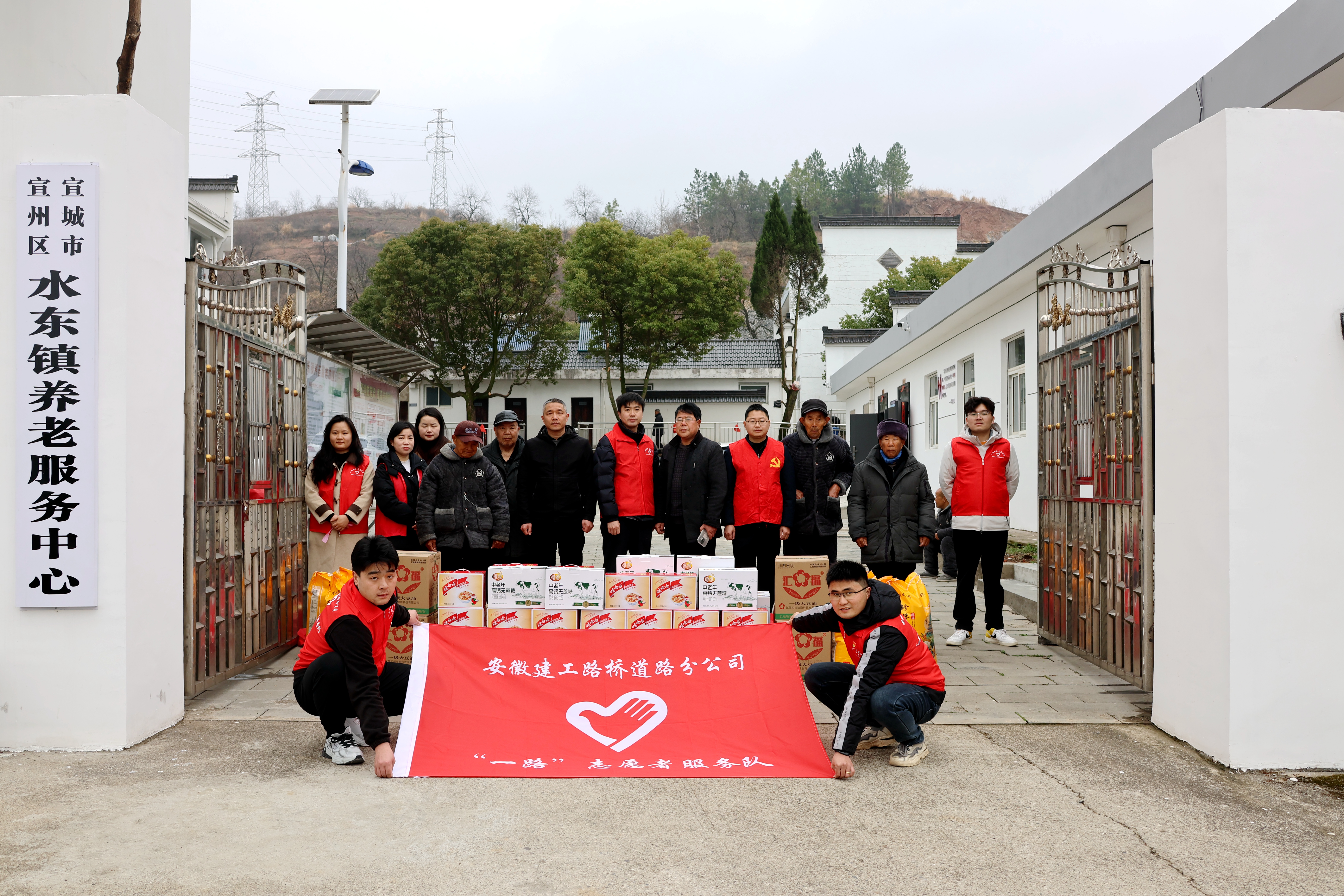 G329改建工程項目職工到宣州區(qū)水東鎮(zhèn)養(yǎng)老服務中心開展雷鋒日志愿慰問活動,為老人們送去營養(yǎng)品、大米和食用油。