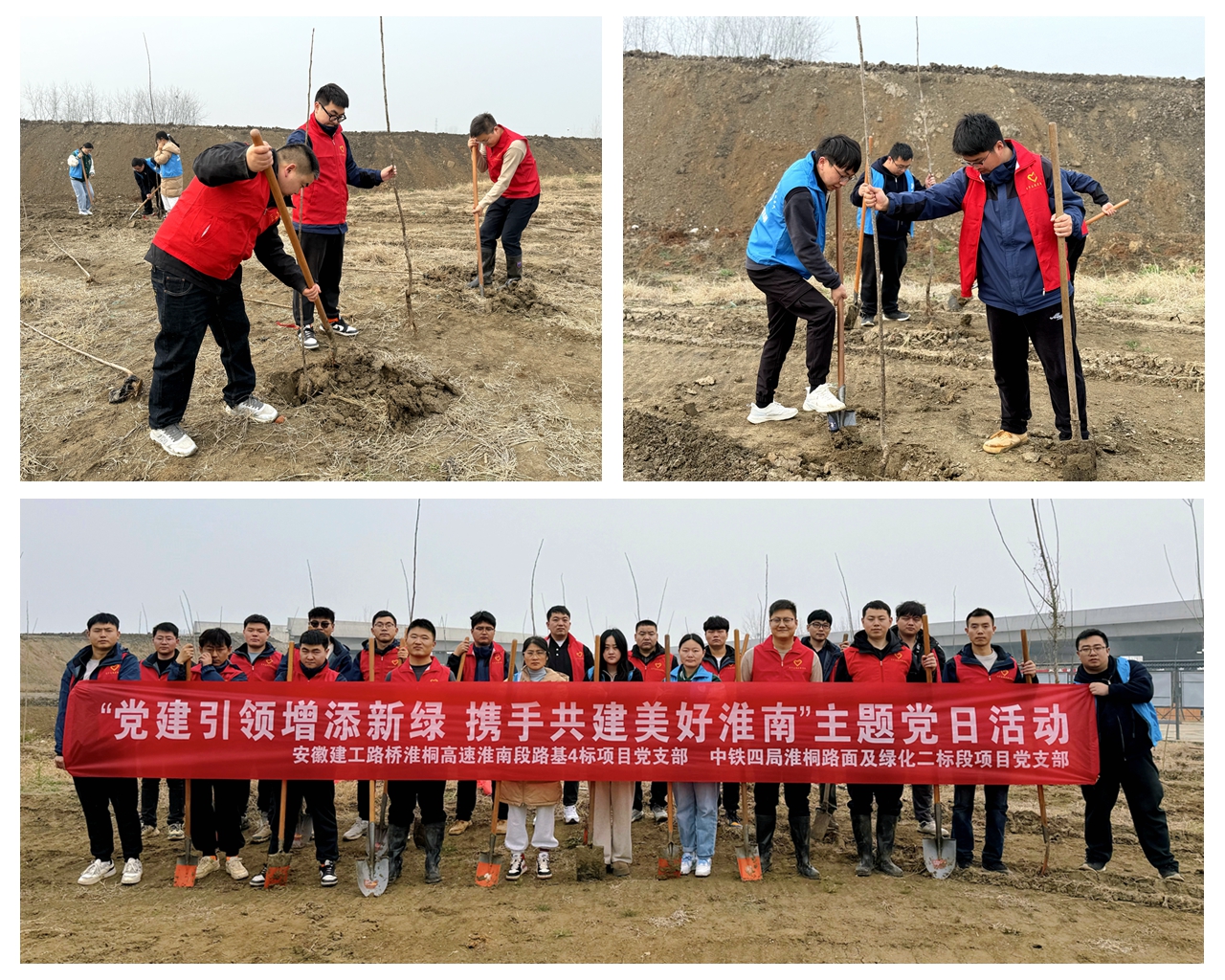 淮桐高速淮南段路基4標項目黨支部聯(lián)合中鐵四局淮桐路面及綠化二標黨支部在李山互通聯(lián)合開展“黨建引領(lǐng)增添新綠,攜手共建美好淮南”主題黨日活動。