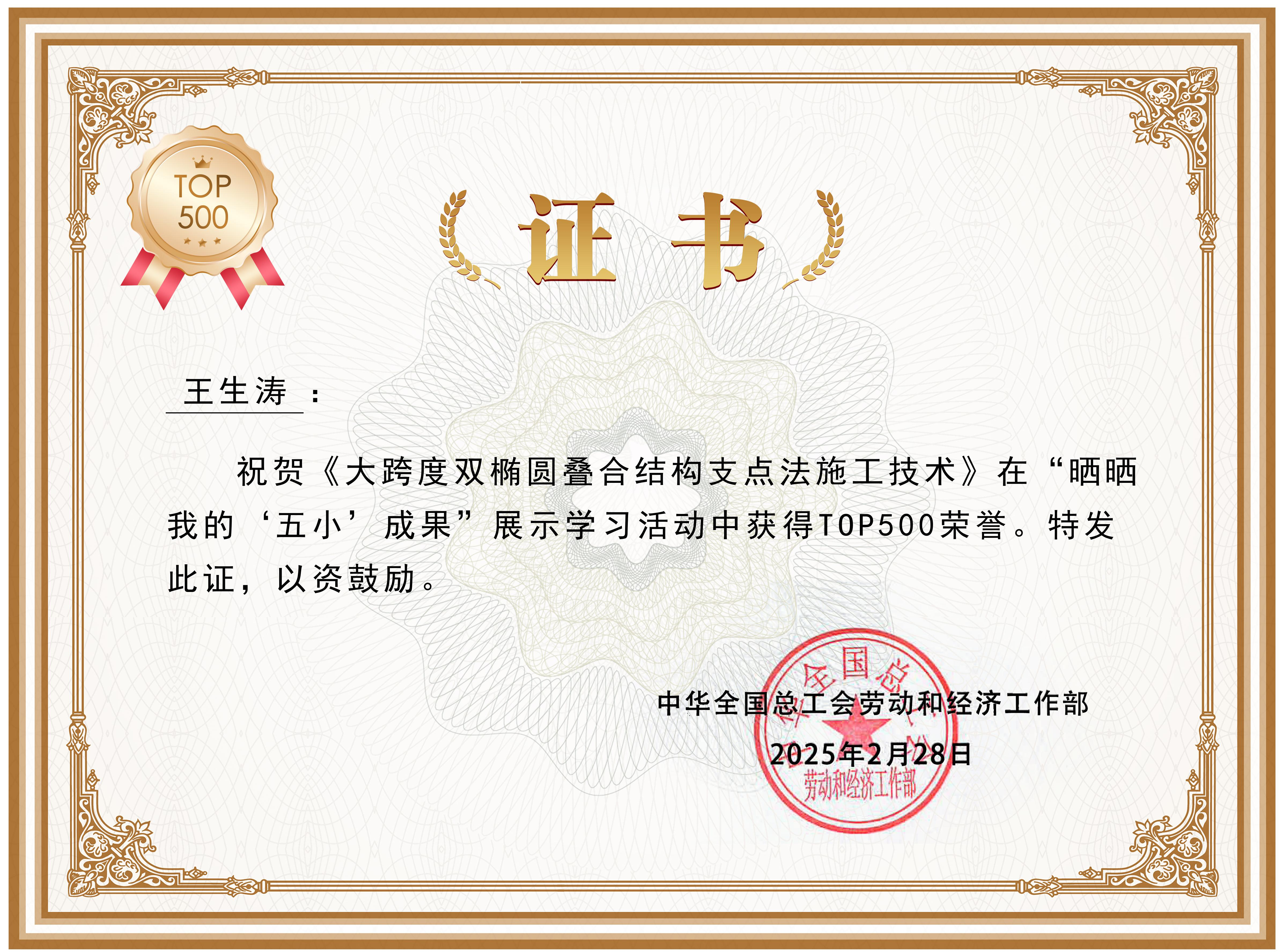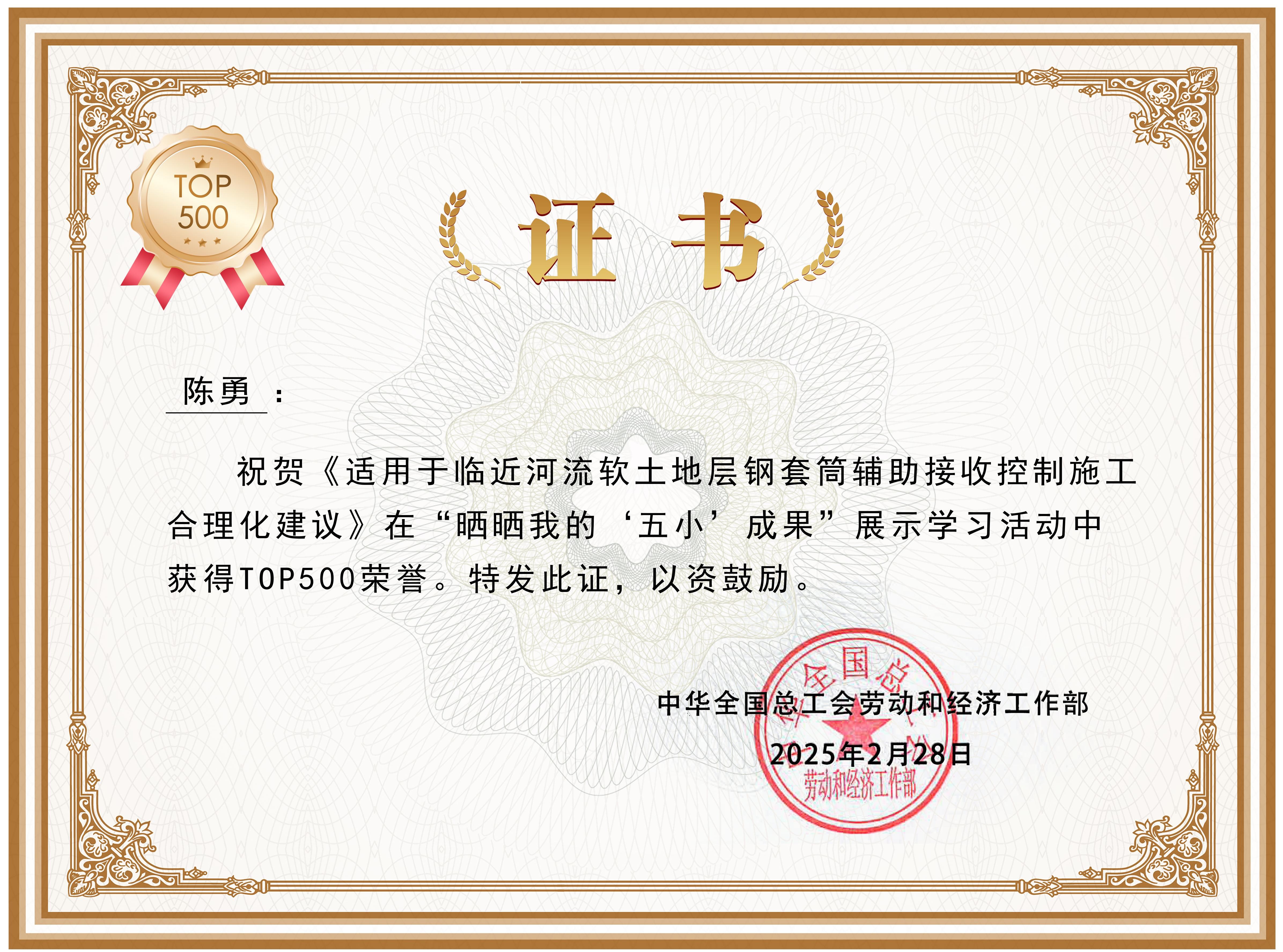 近日,中華全國總工會“曬曬我的‘五小’成果”展示學習活動結果揭曉,公司選送的《大跨度雙橢圓疊合結構支點法施工技術》《適用于臨近河流軟土地層鋼套筒輔助接收控制施工合理化建議》經(jīng)過多輪投票,在5000個參選成果中脫穎而出,獲得TOP500殊榮,分別位列80名和147名。