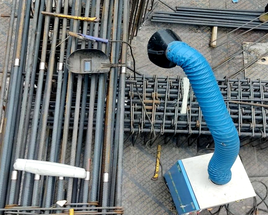 合肥市軌道4號(hào)線1標(biāo)地鐵車站焊接作業(yè)頻繁,會(huì)產(chǎn)生大量有害煙塵。項(xiàng)目采用可移動(dòng)式焊煙收集凈化裝置,集中吸收并凈化焊接產(chǎn)生的廢氣,對(duì)直徑0.3μm以上的金屬顆粒和粉塵處理效率可達(dá)99%,有效解決了煙塵污染和作業(yè)人員身體損傷問(wèn)題。該技術(shù)不僅創(chuàng)造了清潔生產(chǎn)環(huán)境,更實(shí)現(xiàn)了健康保障、環(huán)境改善、經(jīng)濟(jì)效益的三重提升。