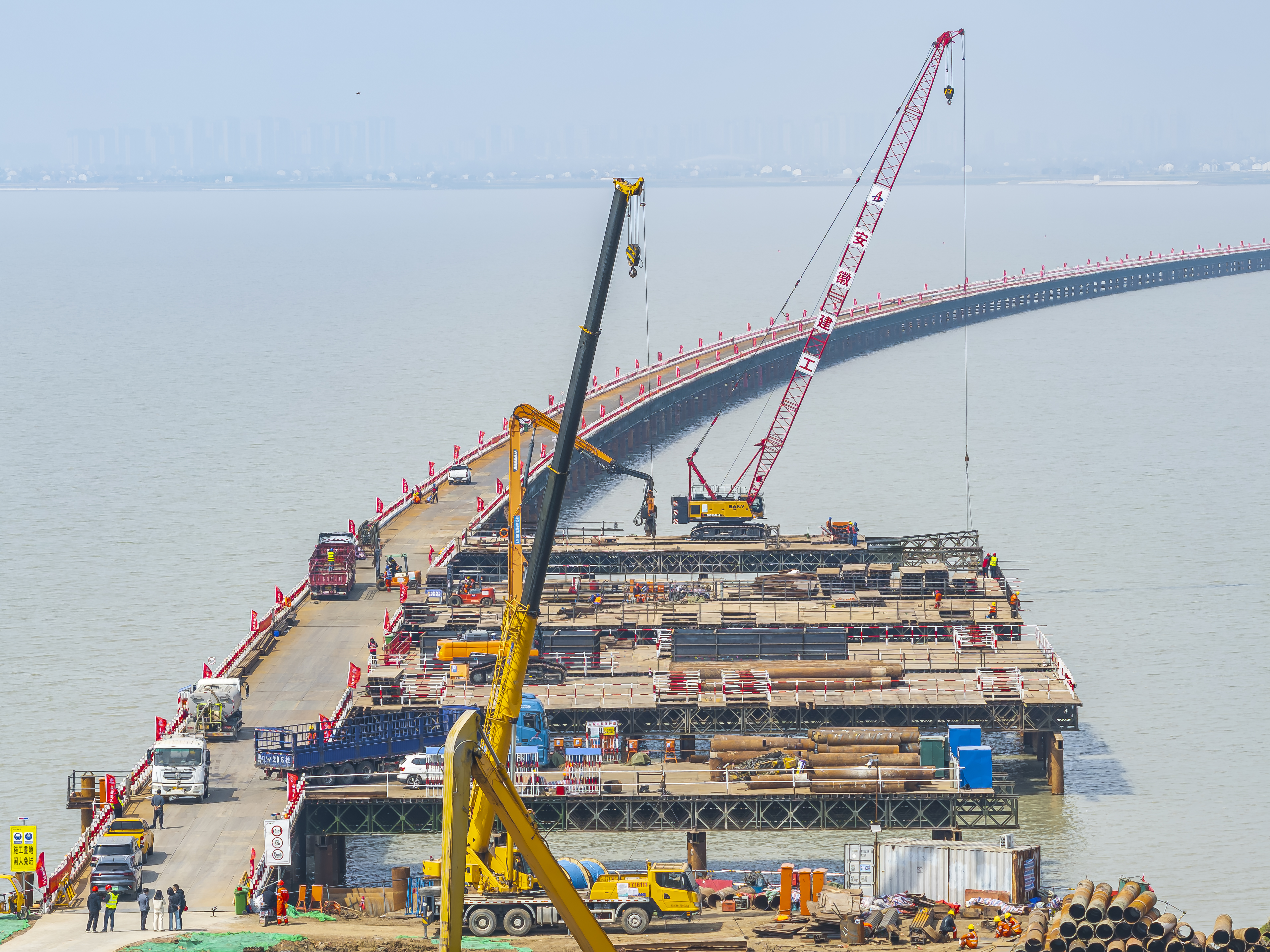 此次貫通的鋼便橋全長3.5公里,作為主橋施工的“生命線”,承擔著機械通行、材料運輸等關鍵任務。為確保鋼便橋順利貫通,項目團隊東西兩岸雙向推進、同步攻堅,科學調配人員、物資等要素,歷時83天順利實現(xiàn)全幅貫通,較原計劃提前20天完成任務。