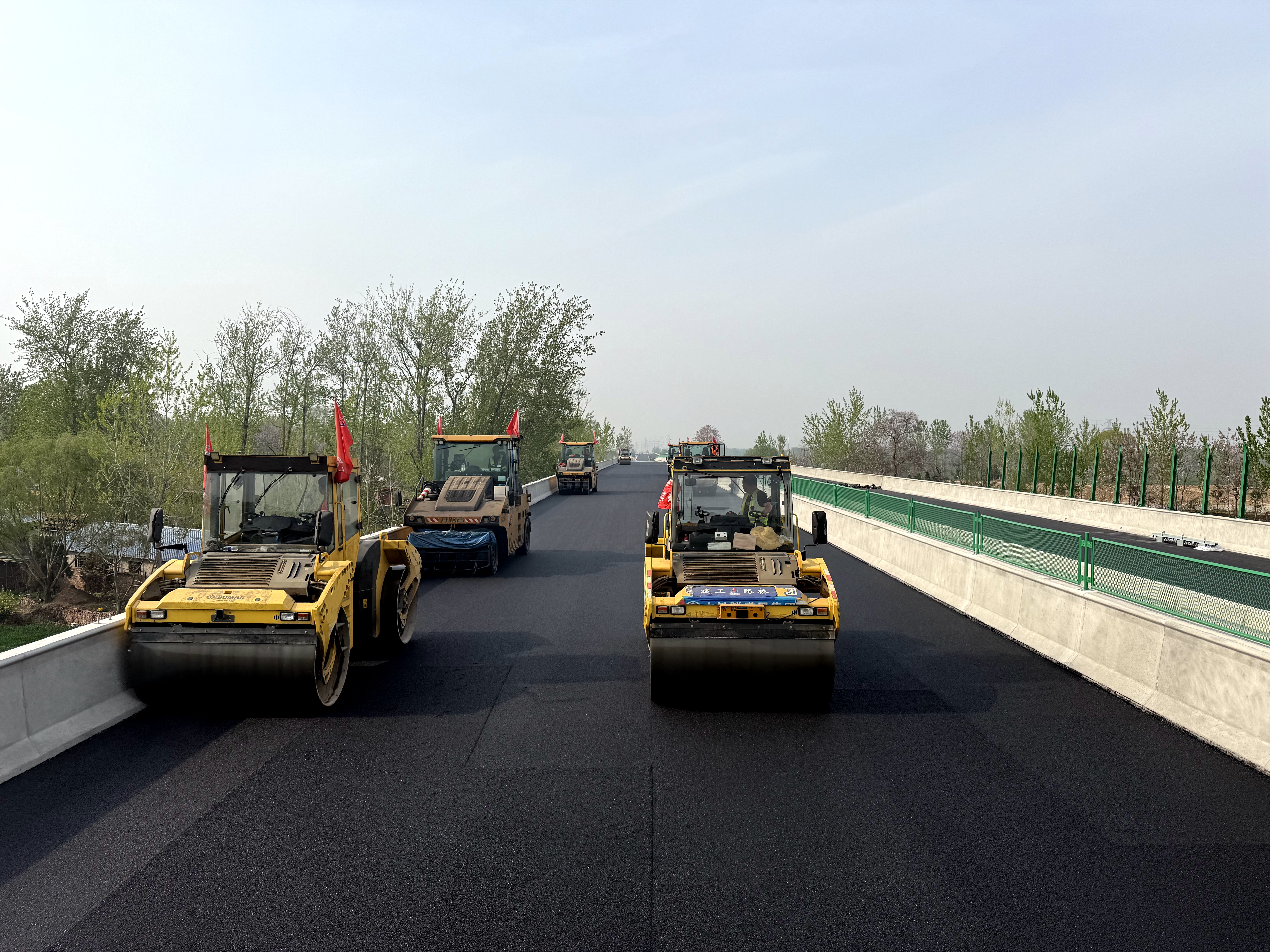在徐淮阜高速淮北段瀝青施工現(xiàn)場(chǎng),路面專業(yè)化服務(wù)中心60天完成25萬(wàn)噸瀝青混合料攤鋪工作,為保證工程質(zhì)量,采用“煤制氣+余熱利用+電磁加熱”加熱綜合應(yīng)用技術(shù)保證瀝青混合料連續(xù)穩(wěn)定生產(chǎn),應(yīng)用機(jī)制砂生產(chǎn)線保證關(guān)鍵材料質(zhì)量穩(wěn)定。三班人員、兩套設(shè)備輪流作業(yè),力爭(zhēng)在4月20日前完成主線貫通,4月25日瀝青面層全線竣工。