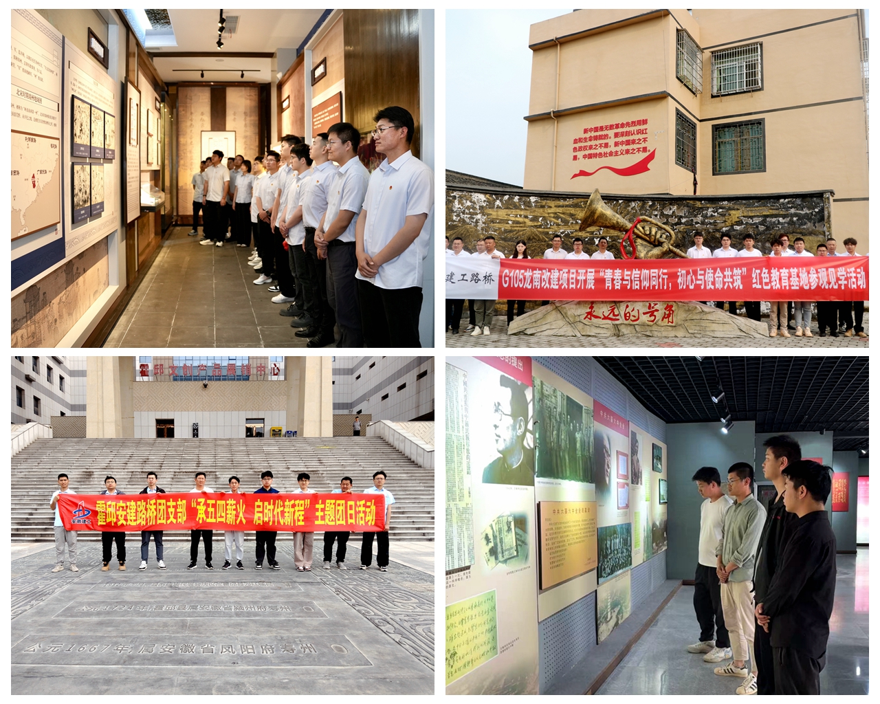公路二公司團(tuán)總支、G105龍南改建項(xiàng)目、涇青高速04標(biāo)項(xiàng)目、霍邱安建路橋團(tuán)支部等團(tuán)組織前往包公故里文化園、金盆山戰(zhàn)斗舊址和紅巖村、王稼祥故居紀(jì)念館等紅色基地,通過(guò)沉浸式參觀、歷史文物觀摩和革命故事講解,重溫革命光輝歷史。
