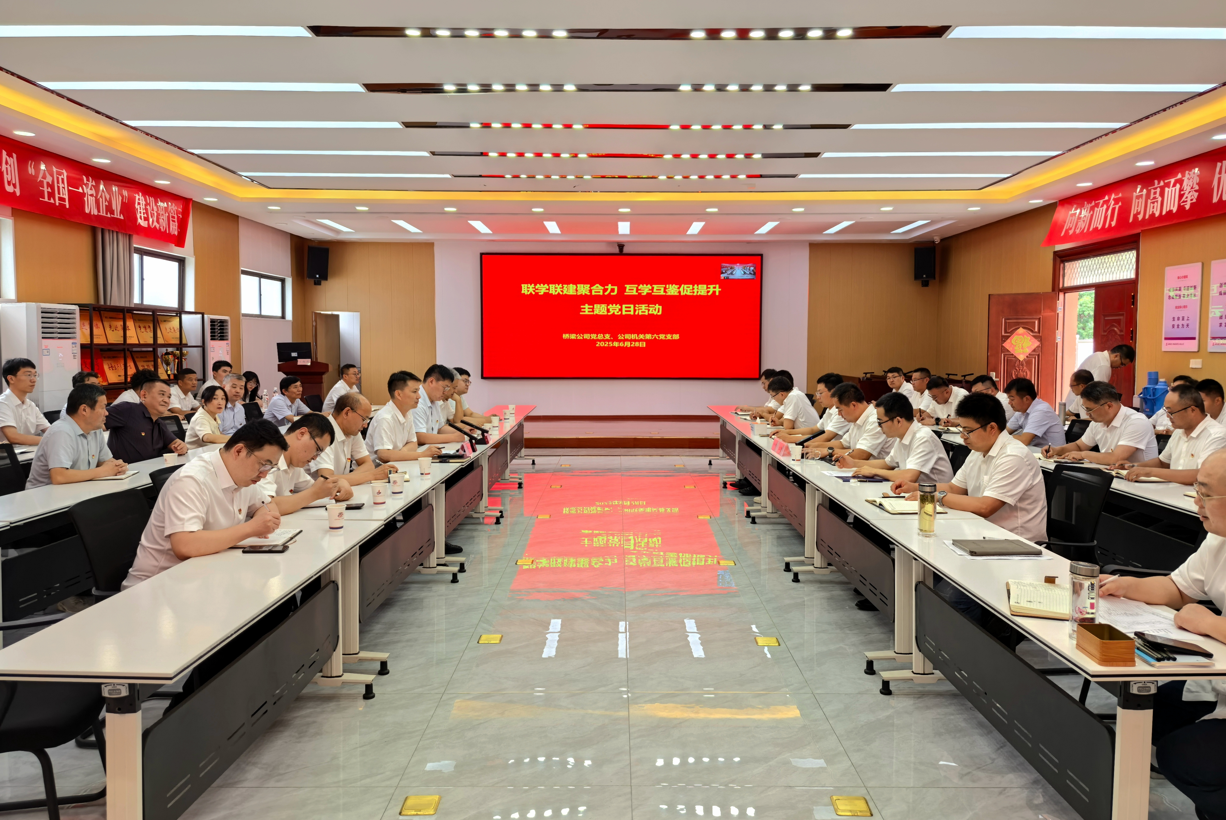 6月28日,公司機關第六黨支部與橋梁公司黨總支聯(lián)合舉辦“聯(lián)學聯(lián)建聚合力 互學互鑒促提升”主題黨日活動。全體黨員聚焦企業(yè)發(fā)展和項目管理中的痛點、難點問題開展業(yè)務研討交流,并實地參觀了橋梁公司創(chuàng)新工作室。