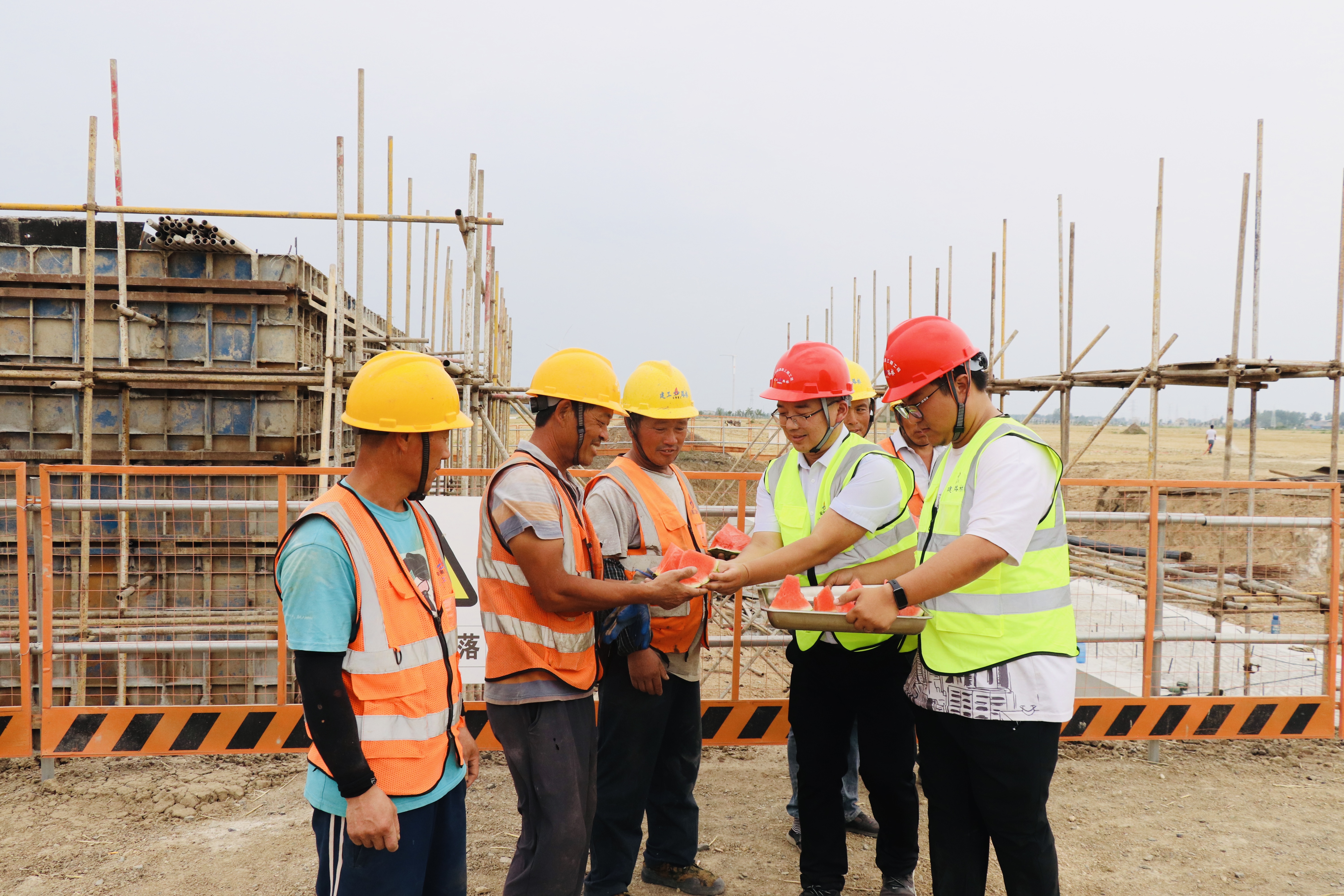 “自5月份開始,項(xiàng)目就陸續(xù)開展防暑降溫措施培訓(xùn)和中暑應(yīng)急救援演練,提前為各勞務(wù)隊(duì)伍配備充足的防暑降溫藥品,并在每日安全巡查時(shí)為一線工人發(fā)放西瓜、礦泉水、綠豆湯等一系列防暑降溫用品,時(shí)刻關(guān)注工人身體狀況,全力確保高溫下施工安全與效率?!表?xiàng)目安全環(huán)保部部長(zhǎng)方巖說。