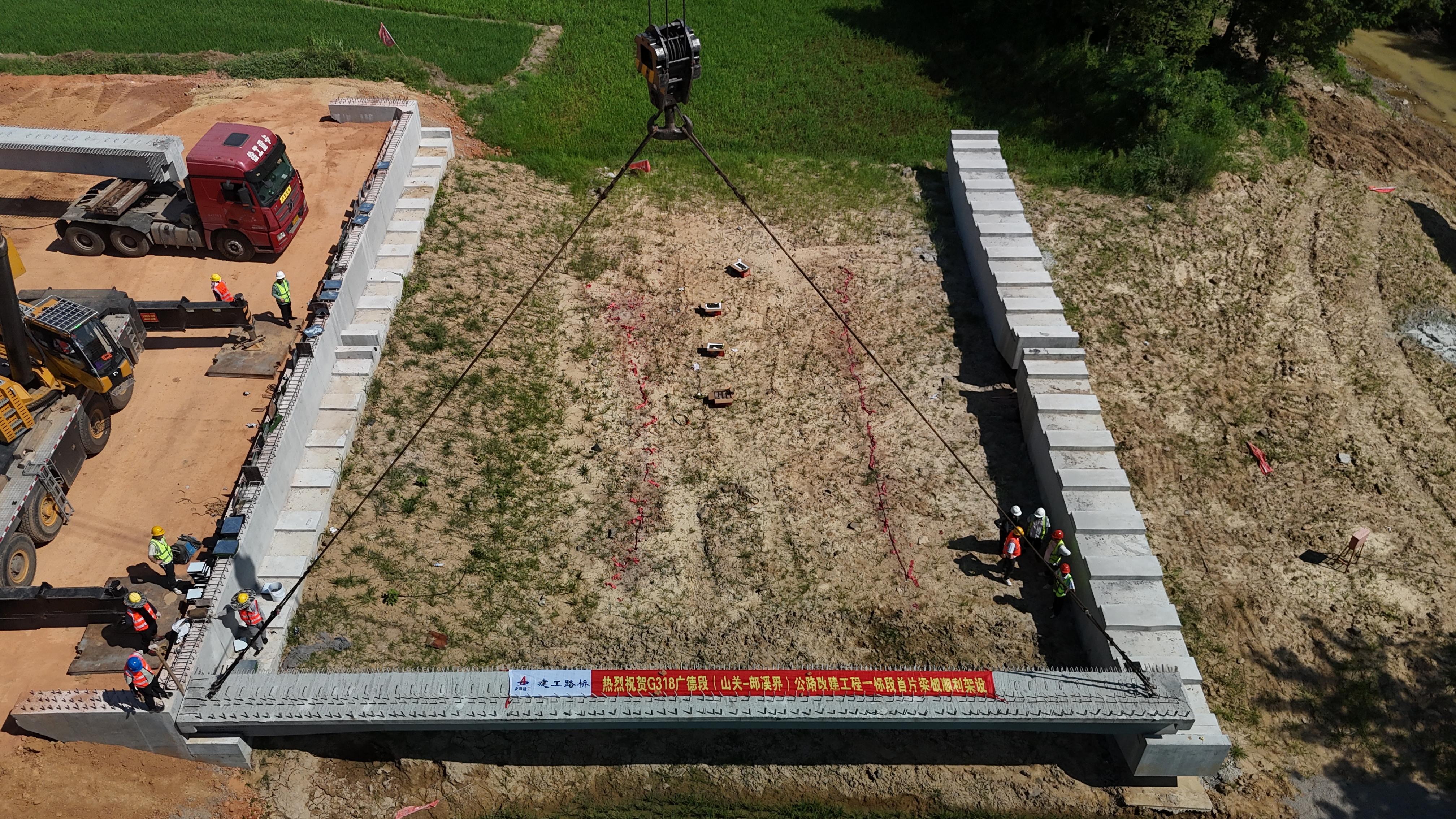 【路橋“競”行時】G318廣德段01標(biāo)首片T梁架設(shè)成功