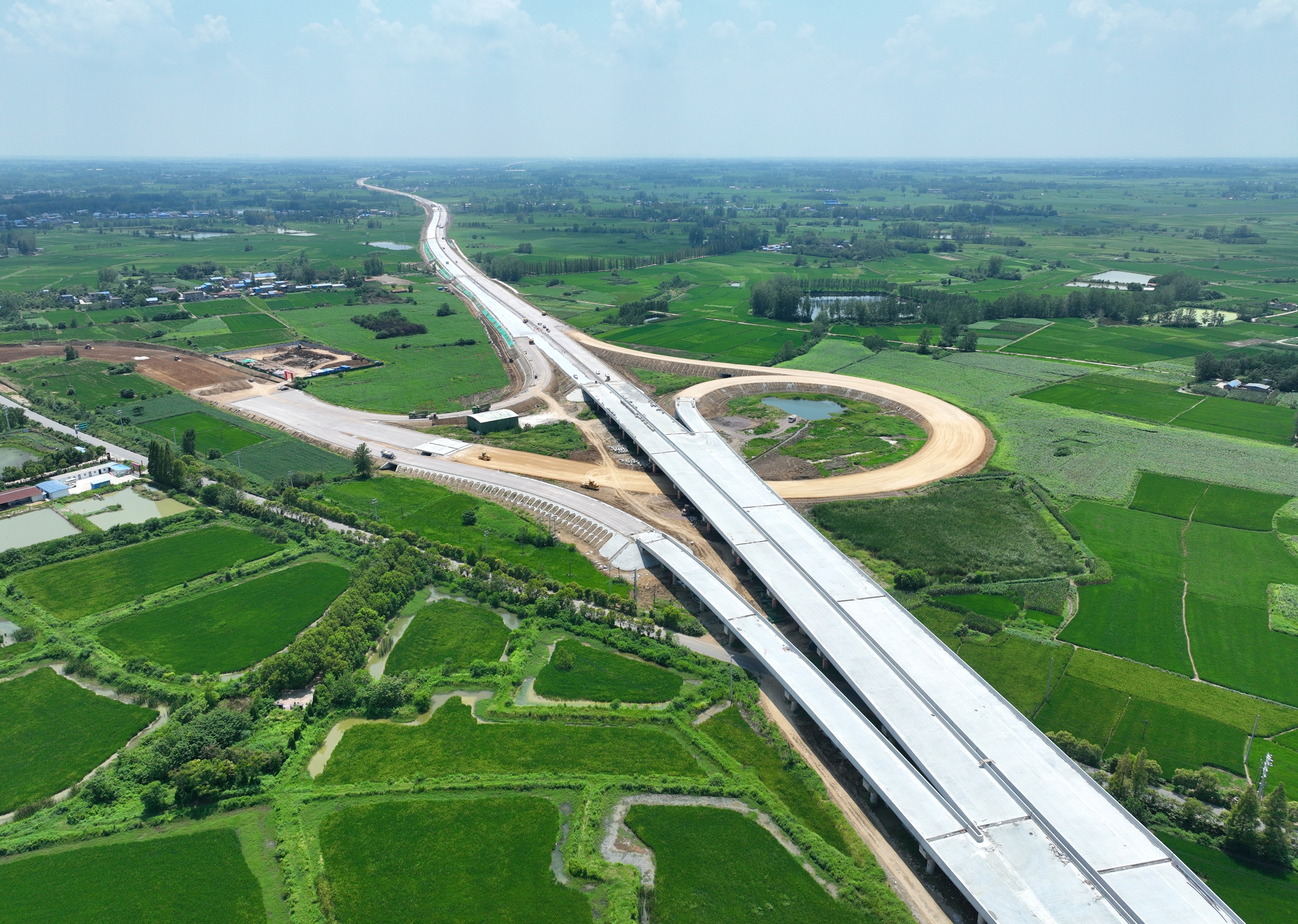 面對軟基、高填方、涉路協(xié)調(diào)難等多重挑戰(zhàn),項(xiàng)目優(yōu)化架梁方案,采用“動(dòng)態(tài)交通導(dǎo)改+分時(shí)段施工”模式,最大限度減少對地方路網(wǎng)的通行影響,兩座互通立交已于6月底實(shí)現(xiàn)貫通。目前,項(xiàng)目控制性工程路基工程主線施工基本結(jié)束,正迅速推進(jìn)防排水等附屬工程施工,已完成合同工程量96%,朝著9月交工驗(yàn)收目標(biāo)全速?zèng)_刺。