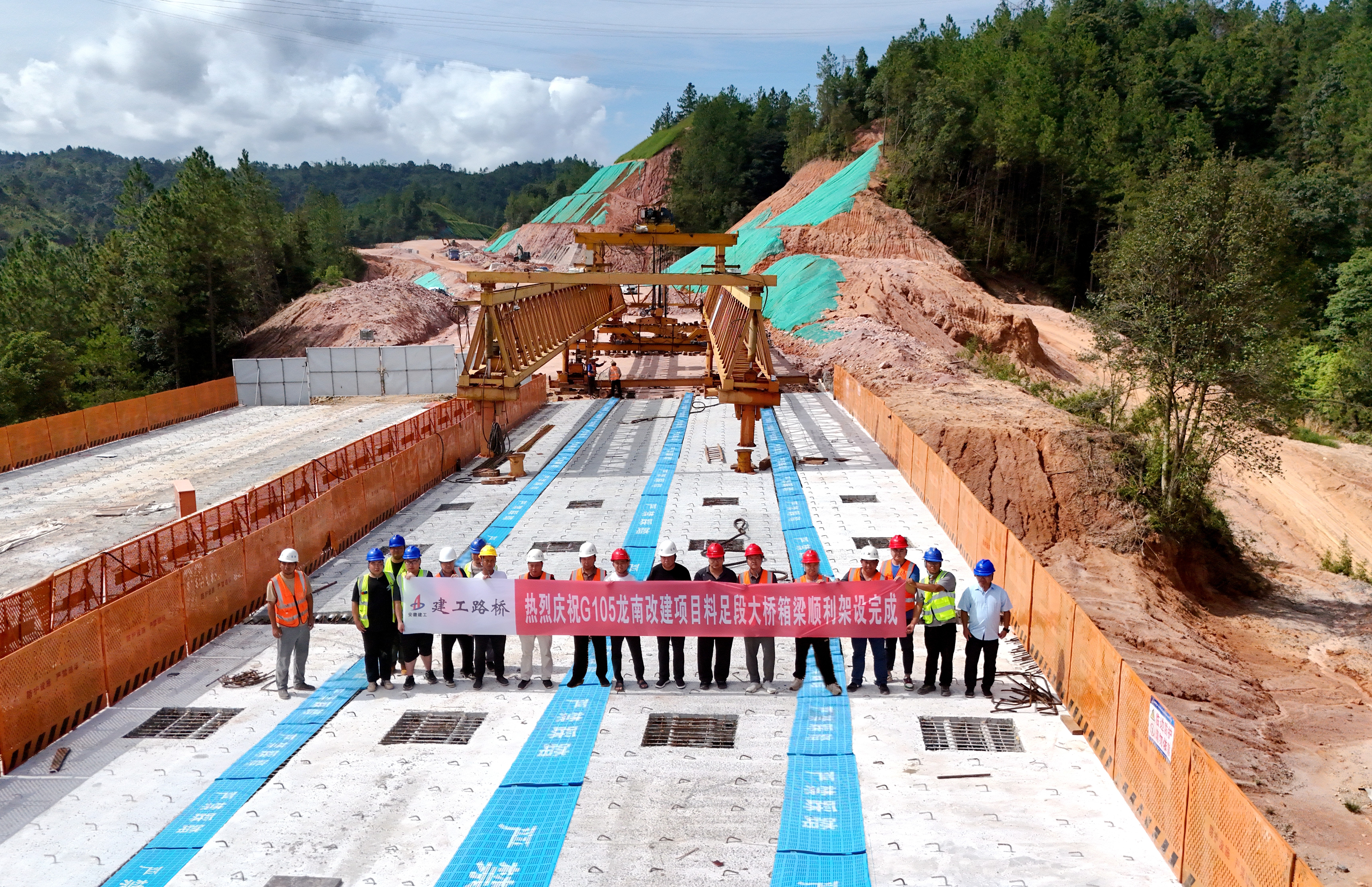 【路橋“競”行時】G105龍南改建項目料足段大橋預(yù)制箱梁架設(shè)完成