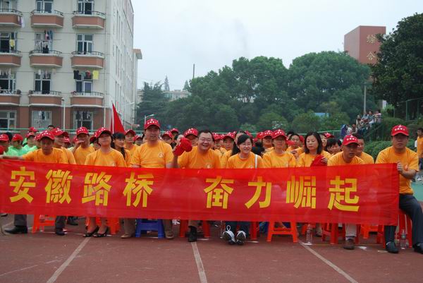 來自21個(gè)單位的近500員工組成了不同色彩的10個(gè)方隊(duì)參加了開幕式。公司由總經(jīng)理汪衛(wèi)東、黨委書記陳光磊帶隊(duì),組成約100人的方隊(duì)舉著“安徽路橋 奮力崛起”的橫幅,高喊“安徽路橋 搶抓機(jī)遇 實(shí)現(xiàn)跨越 科學(xué)發(fā)展 共促和諧”的口號(hào),向集團(tuán)領(lǐng)導(dǎo)和兄弟單位展示了公司積極向上的風(fēng)采。