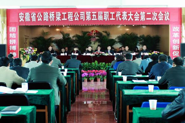 上午8:30,在莊嚴(yán)的國歌聲中,第五屆職工代表大會第二次會議正式開幕。會議由公司黨委委員、副總經(jīng)理、總工程師彭申凱主持。公司總經(jīng)理汪衛(wèi)東在會上作了題為《夯實管理基礎(chǔ),拓展發(fā)展空間,為推動安徽路橋快速發(fā)展而努力奮進(jìn)》的工作報告。報告回顧總結(jié)了2009年工作。2009年是新世紀(jì)以來我國經(jīng)濟(jì)發(fā)展最為困難的一年。公司面對復(fù)雜快變的市場環(huán)境,在集團(tuán)公司的科學(xué)指導(dǎo)下,主動適應(yīng)市場,搶抓機遇,呈現(xiàn)了平穩(wěn)較快發(fā)展的良好局面,譜寫了實現(xiàn)新崛起的動人篇章。公司先后榮獲安徽省建筑業(yè)企業(yè)五十強、合肥市委市政府文明單位等市廳級以上集體榮譽11項,形象大幅提升。全年新簽合同額14.7億元,同比增長20%,經(jīng)營業(yè)績再創(chuàng)新高。完成總產(chǎn)值約11.08億元,同比增長10.8%,施工產(chǎn)值再上新臺階。主營業(yè)務(wù)收入8.34億元,實現(xiàn)利潤總額530.3萬元,同比增長35.22%,資產(chǎn)保值增長率106.5%,經(jīng)濟(jì)效益穩(wěn)步增長。創(chuàng)“黃山杯”、“建工杯”各1項,各類科技進(jìn)步獎(工法)8項,創(chuàng)建安全文明示范工地5個,連續(xù)三年無重大安全和質(zhì)量事故。