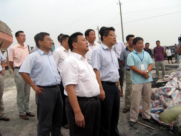屠總一行首先視察了我部已經(jīng)完成瀝青砼施工的無量溪大橋,詢問了大橋的施工情況。隨后,屠總又視察了我部K206處完成小橋橋面鋪裝的施工現(xiàn)場。最后,屠總來到我部瀝青拌和站場地視察,并指出了現(xiàn)場的一些不足,要求以最快的速度進行完善,強調(diào)指出在施工過程中始終嚴(yán)把質(zhì)量關(guān),把握好工程施工的重點。