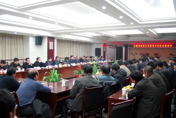 座談會開始前,會場播放了公司宣傳片,展示公司二十五年來的發(fā)展歷程。座談會由副總經(jīng)理盛明宏主持??偨?jīng)理助理傅月斌通報了公司2010年施工總體情況。公司分管領(lǐng)導(dǎo)、各部門負(fù)責(zé)人、項(xiàng)目經(jīng)理分別作了發(fā)言。黨委書記陳光磊指出合作共贏、共同發(fā)展是公司永久追求的目標(biāo),安徽路橋的業(yè)績也凝聚著合作隊(duì)伍的努力;合作共贏不僅是要經(jīng)濟(jì)利益,更要追求社會效益;公司各級對合作隊(duì)伍的真誠服務(wù)是職責(zé)所在,合作隊(duì)伍認(rèn)真履約、堅(jiān)強(qiáng)給力,就是對公司工作的最大支持。陳書記還表示目前項(xiàng)目已建立了支部、職工小家、職工書屋等,歡迎合作隊(duì)伍積極參加,享受權(quán)利。