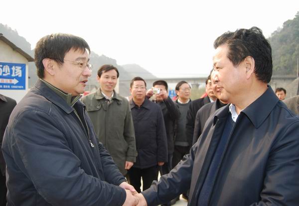 3日上午,黃省長來到了視察首站宣寧高速02標(biāo)。下車后,黃省長與汪總、項目部員工一一握手,向項目全體員工致以親切的問候。黃省長仔細(xì)聽取了汪總對該項目工作進(jìn)展情況的匯報,認(rèn)真觀看了宣寧高速總體平面規(guī)劃圖和公司宣傳圖片展,深入了解了制約該項目進(jìn)展的拆遷問題。