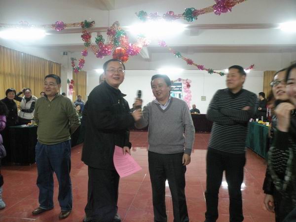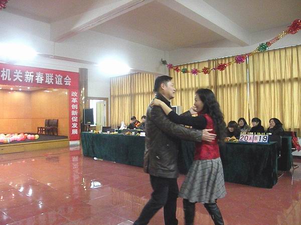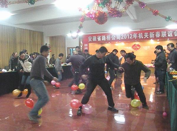 四支代表隊分別在綁腳聯(lián)體賽跑、集體造句、搶椅子、瞎子擊鼓、辯真假、踩氣球等游戲環(huán)節(jié)展開了激烈競爭,現(xiàn)場掌聲連連,笑聲、歡呼聲此起彼伏,氣氛十分熱烈。最終飛龍代表隊在最后一個游戲環(huán)節(jié)力壓奔馳隊獲得一等獎。在游戲中間的節(jié)目表演環(huán)節(jié),各隊多才多藝的隊員們爭相登臺表演,有人唱歌、有人舞蹈、還有人一秀太極拳,競賽的節(jié)目使聯(lián)歡會高潮迭起、亮點紛呈。聯(lián)歡會上還安排了讓人激動的抽獎活動。