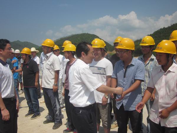 在該標(biāo)全南互通跨線橋上,王前虎主任與B1標(biāo)項目全體在建員工親切握手并交談。在聽取了贛州高速總經(jīng)理溫?fù)P漢的簡要介紹后,王前虎稱贊道,安徽路橋不愧為江西高速市場上保質(zhì)履約的優(yōu)秀建設(shè)單位,100天的攻堅克難,路橋人既為大廣高速龍楊段項目的順利通車目標(biāo)提供了保障,也為自己贏得了美譽(yù),這份成績與安徽路橋科學(xué)規(guī)范的企業(yè)管理、過硬的技術(shù)力量是密不可分的。