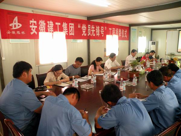 10點左右,李書記、牛書記一行來到項目會議室舉行“黨員先鋒號工程”授牌儀式。會上,公司、國內(nèi)公司及市政分公司分別就爭創(chuàng)“黨員先鋒號工程”情況做了具體匯報。會上,李書記和牛書記分別作了重要講話。李書記就項目“黨員先鋒號工程”創(chuàng)建情況談了三點感受:一是創(chuàng)建工作務(wù)實,內(nèi)容具體;二是創(chuàng)建工作主題突出,有自己的特色;三是創(chuàng)建隊伍有生機、有朝氣。就“黨員先鋒號工程”創(chuàng)建下步工作,李書記提出三點要求:一是創(chuàng)建工作要圍繞生產(chǎn)中心進行;二是要拓寬創(chuàng)建活動范圍,要逐步將活動延伸到合作隊伍和農(nóng)民工中;三是創(chuàng)建工作要建立長效機制。牛書記指出公司市政項目“黨員先鋒號工程”創(chuàng)建工作開展的很好,很有特色,對項目在人文關(guān)懷方面的工作給予了充分肯定,對項目員工表現(xiàn)出的朝氣表示欣賞,并對安全生產(chǎn)、職工生活等方面工作做提出了具體要求。