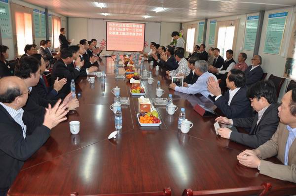 在項目施工現(xiàn)場,市政分公司副經(jīng)理王明禮向考察團詳細介紹了工程情況。當考察團對該項目僅需300天就能夠完成概算6.06億元的施工任務(wù)時,表現(xiàn)出不可思議和贊嘆之情。在項目會議室,孫學軍董事長對公司總體情況進行了介紹,并逐一介紹了公司在市政、高速、橋隧、海外等各個領(lǐng)域的精品工程。