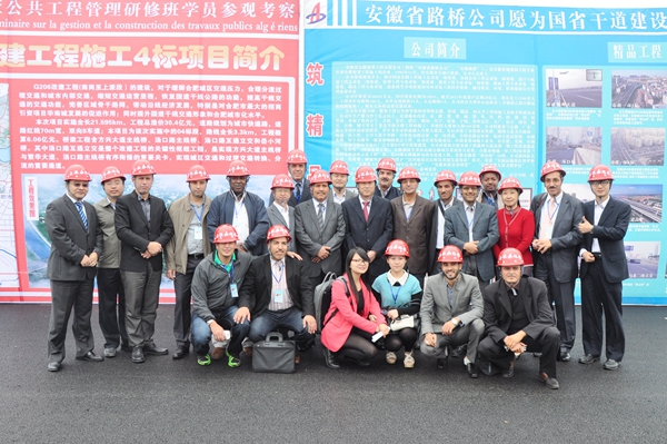 10月21日,阿爾及利亞公共工程管理研修班學(xué)員應(yīng)安徽建工集團(tuán)邀請,來到公司G206改建工程4標(biāo)段參觀考察。集團(tuán)副總經(jīng)理許克順、總經(jīng)理助理汪衛(wèi)東、公司副總經(jīng)理錢申春等人陪同。